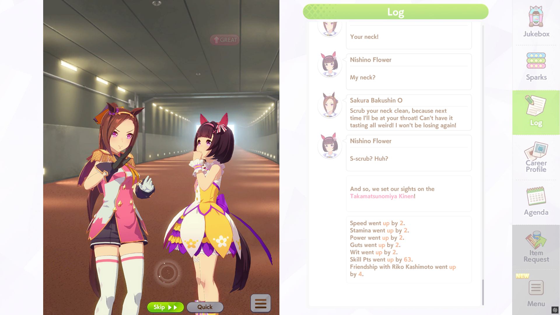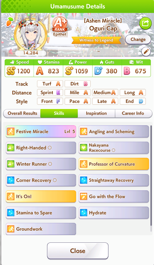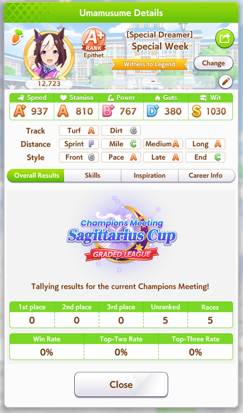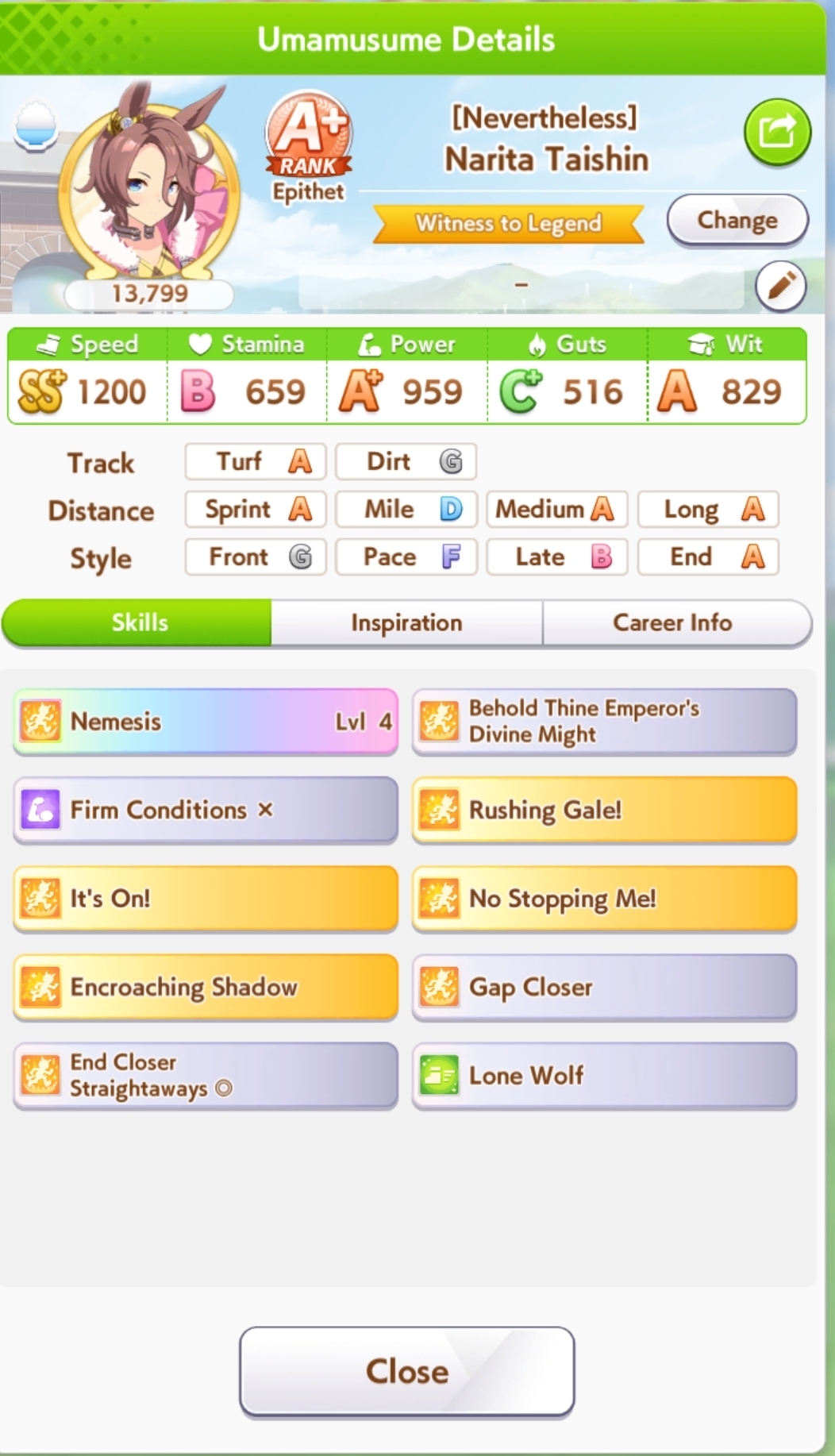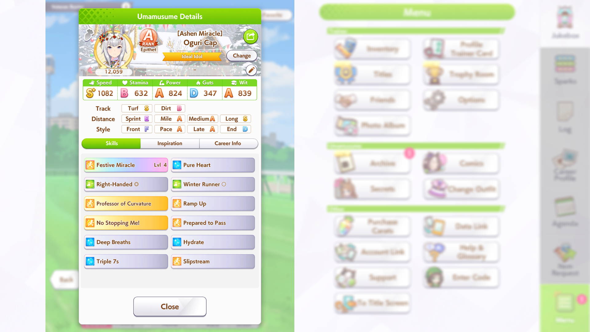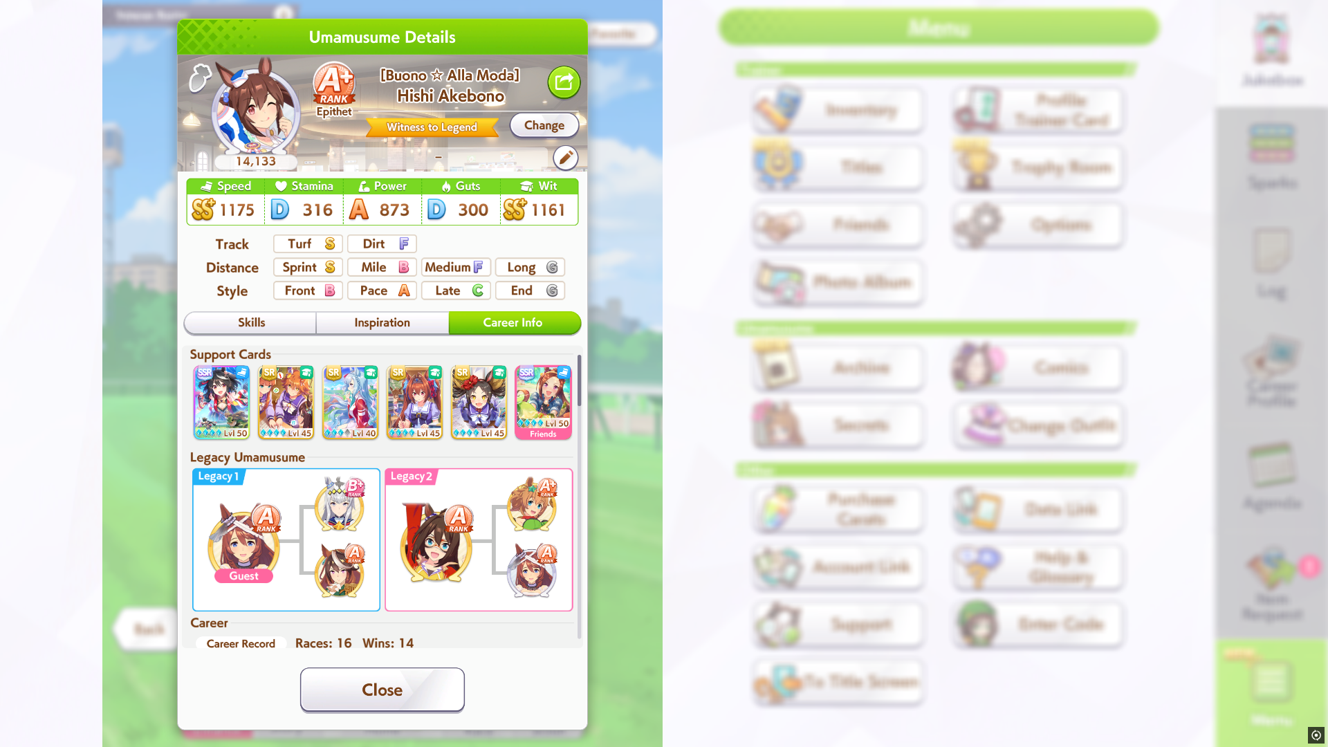 Первое впечатление от карьеры - лёгкая и чилловая. Не знаю как будет дальше, но даже несмотря на противное задание как у Огури а-ля: Выиграй в топ 3 столько то гонок, что принуждает тебя тратить ходы она и Юнити выиграла А ранговой тимой и сама вырывалась вперёд всегда под конец. Ума стан и S не упали и ладно, я и не думал что успею на этот турик её сделать