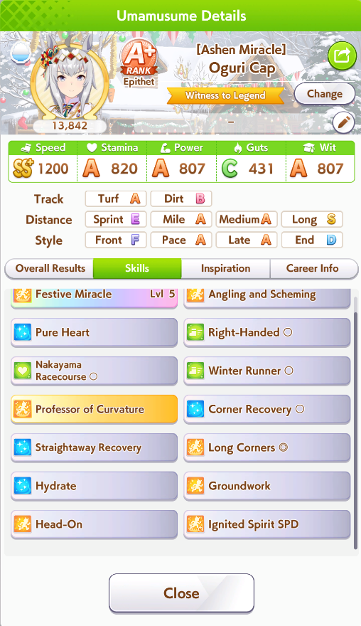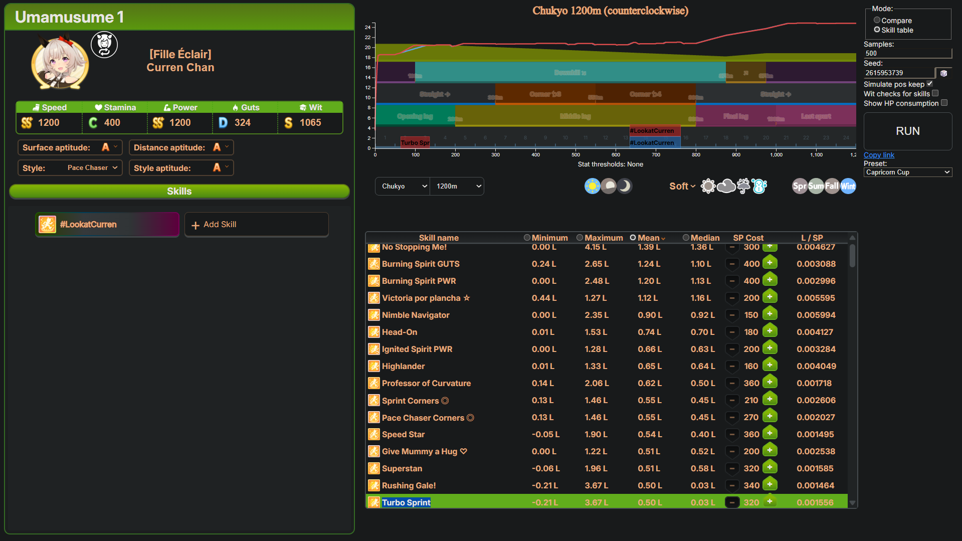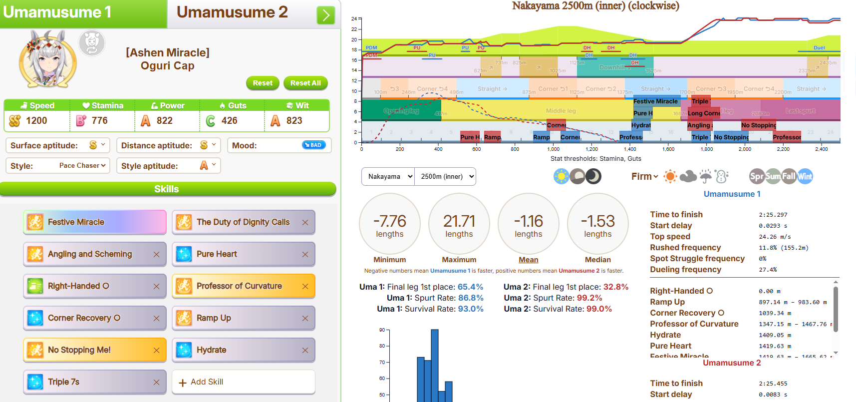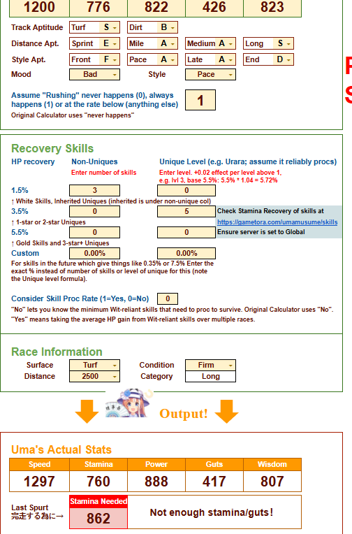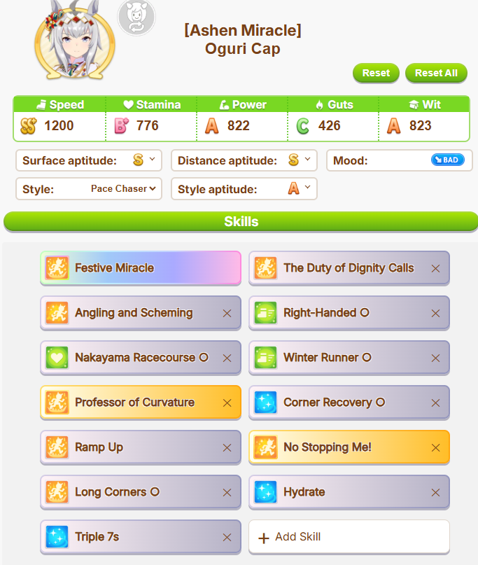 Результаты от двух Огурей. Первая с Эс лонг и 1100спд - 3 победы 2 вторых места. Вторая - 1200 спд, без Эс, 4 рекавери для страты с проком в середине гонки. Остальные статы примерно равны. 3 вторых места, всё остальное в говне. Мой вывод по супер охуенной выборке из 5 гонок на каждой - Эс на дист решает. Делайте с этой статой чего хотите. Огурец сила, но собрать его это да. Легче Голшипа притащить.
