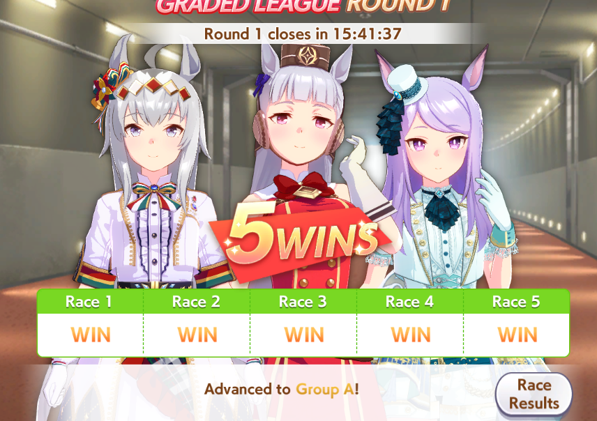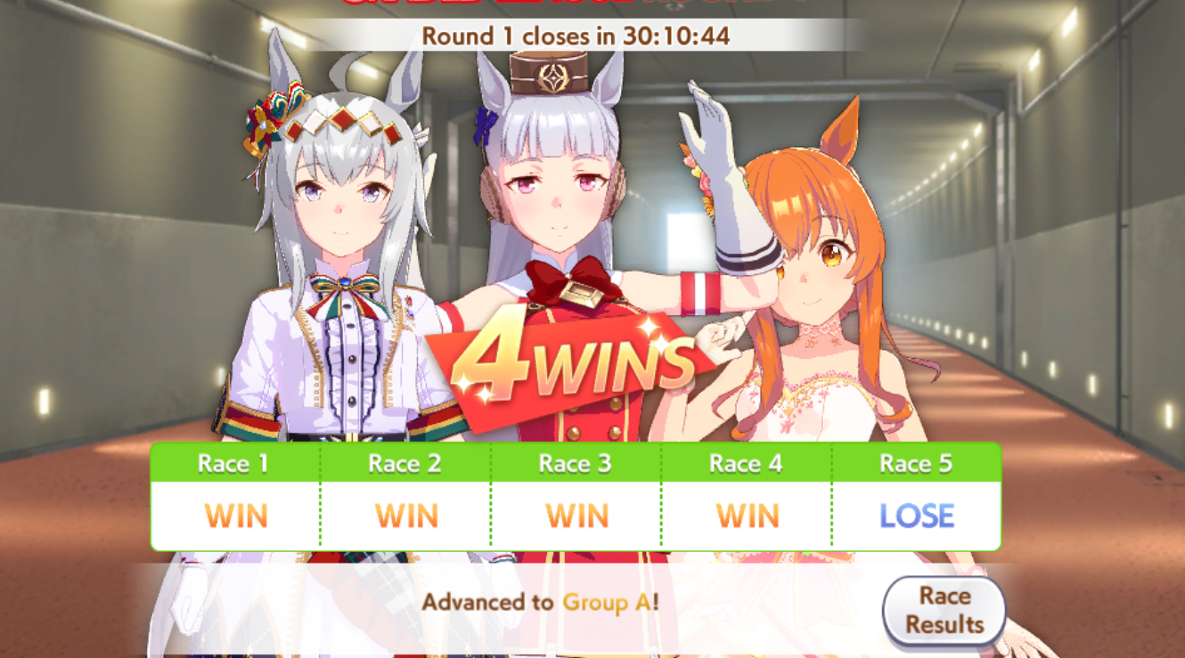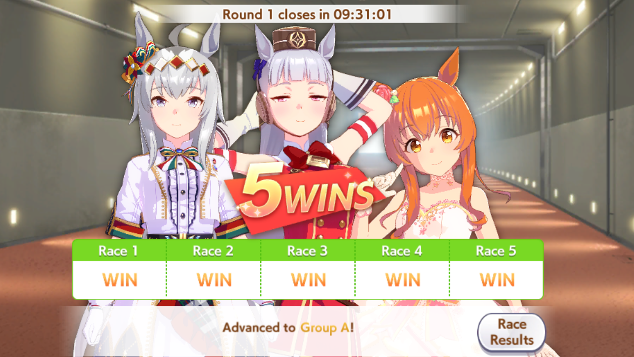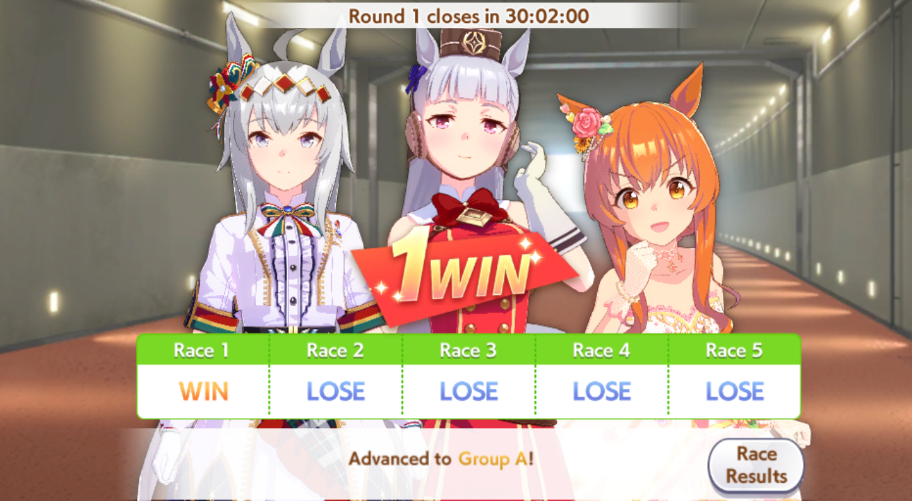 В первый раз в А группу не прошел. Всех казуалов заебала игра похоже, видел всего за 40 скачек штук 10 без S рангов, а без околомета лошадок вообще 0. Все как под копирку с умениями и прочими S. Такого никогда не видел до этого в первом раунде.