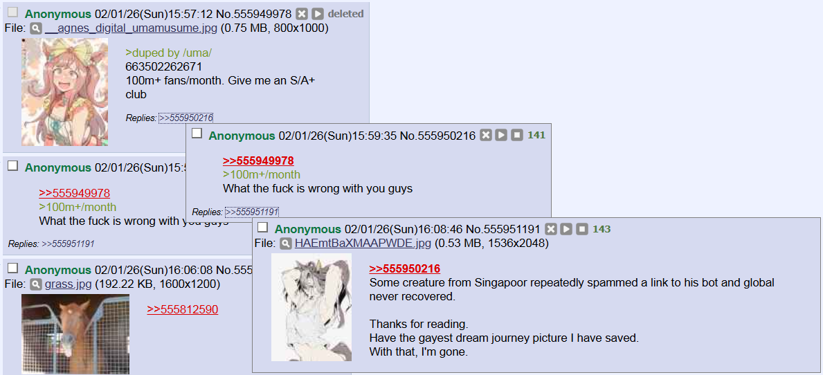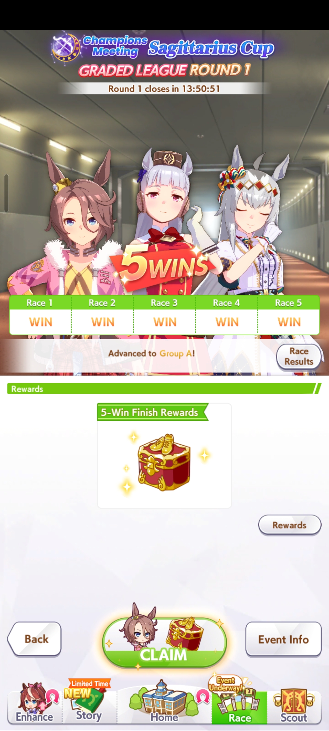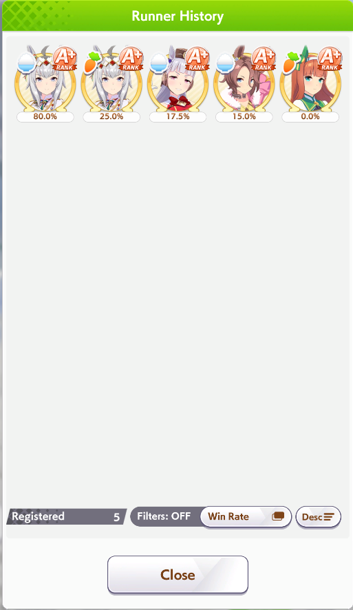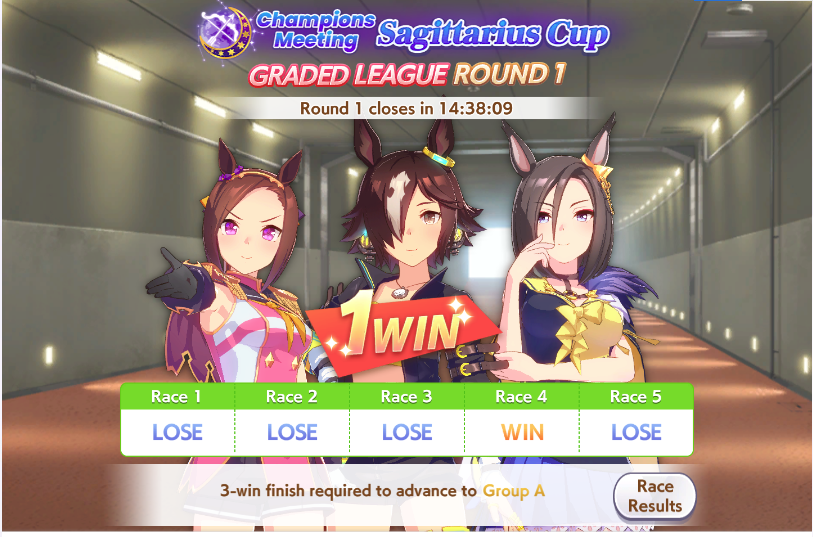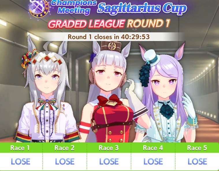 В первый раз в А группу не прошел. Всех казуалов заебала игра похоже, видел всего за 40 скачек штук 10 без S рангов, а без околомета лошадок вообще 0. Все как под копирку с умениями и прочими S. Такого никогда не видел до этого в первом раунде.