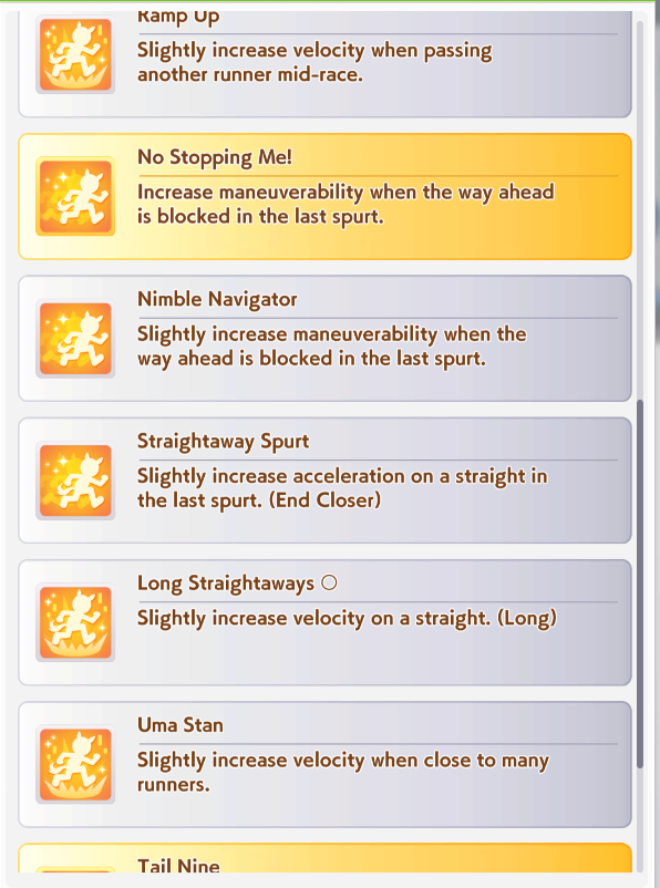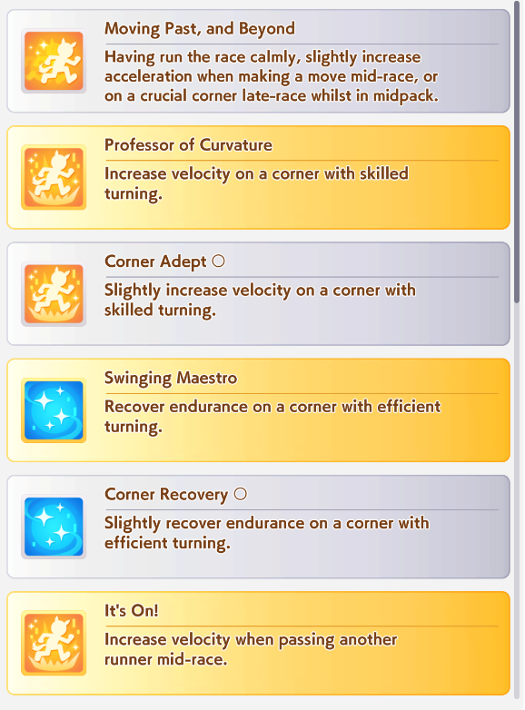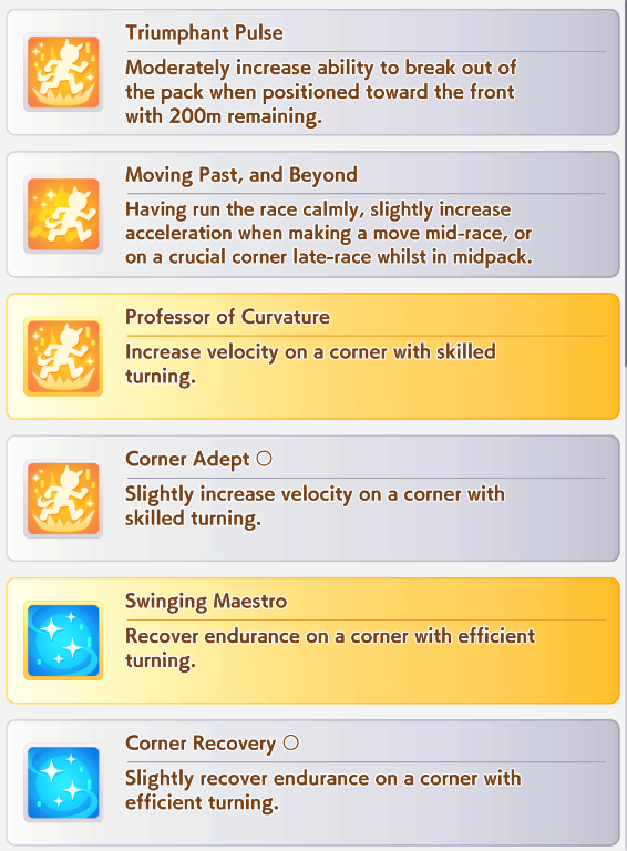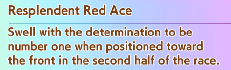 >>6338216 Лаки пэйс - если нет фронтов в гонке. Т.е. абилки прокают от разных условий. Если в скобках стоит дистанция, стиль бега, тип поверхности, погода и т.д. - они прокают только при этом условии. Также существуют условия прока полускрытые, т.е. о них написано в описании скилла, но точно ты из игры их не узнаешь без доп сайтов. Типа условий - быть в первой половине, в начале гонки, быть заблокированным и т.д. Вот именно одно из таких условий абузит лаки пэйс. Т.е. если в гонке нет фронта - то фронтами становятся пэйсеры. Они не перестают быть пэйсерами для игры, но просто с них снимается условие - не обгонять фронтовых лошадей, ведь их нет. Из-за этого ты можешь абузить скиллы, которые абузят фронты, но без привязок к стилю бега. Типа граундворка, который забустит тебя на первое место. А потом ты можешь прокнуть с него соответствующие скиллы типа ульты Сеюн Скай (не этот цм, тут ульт скай не работает)