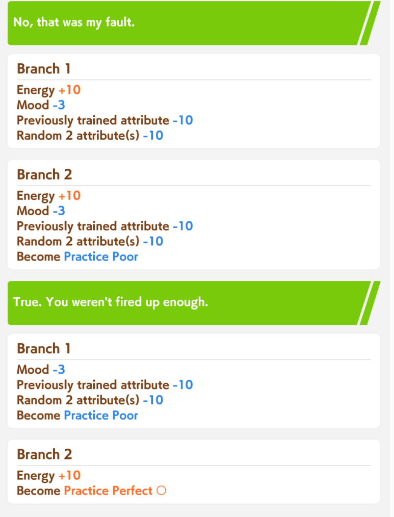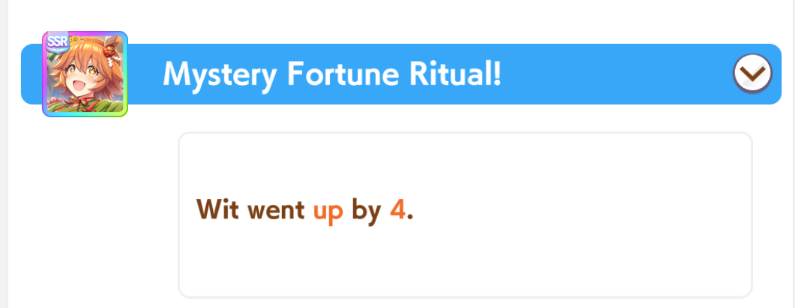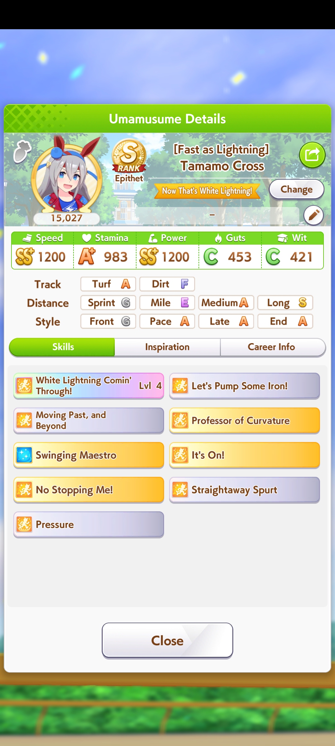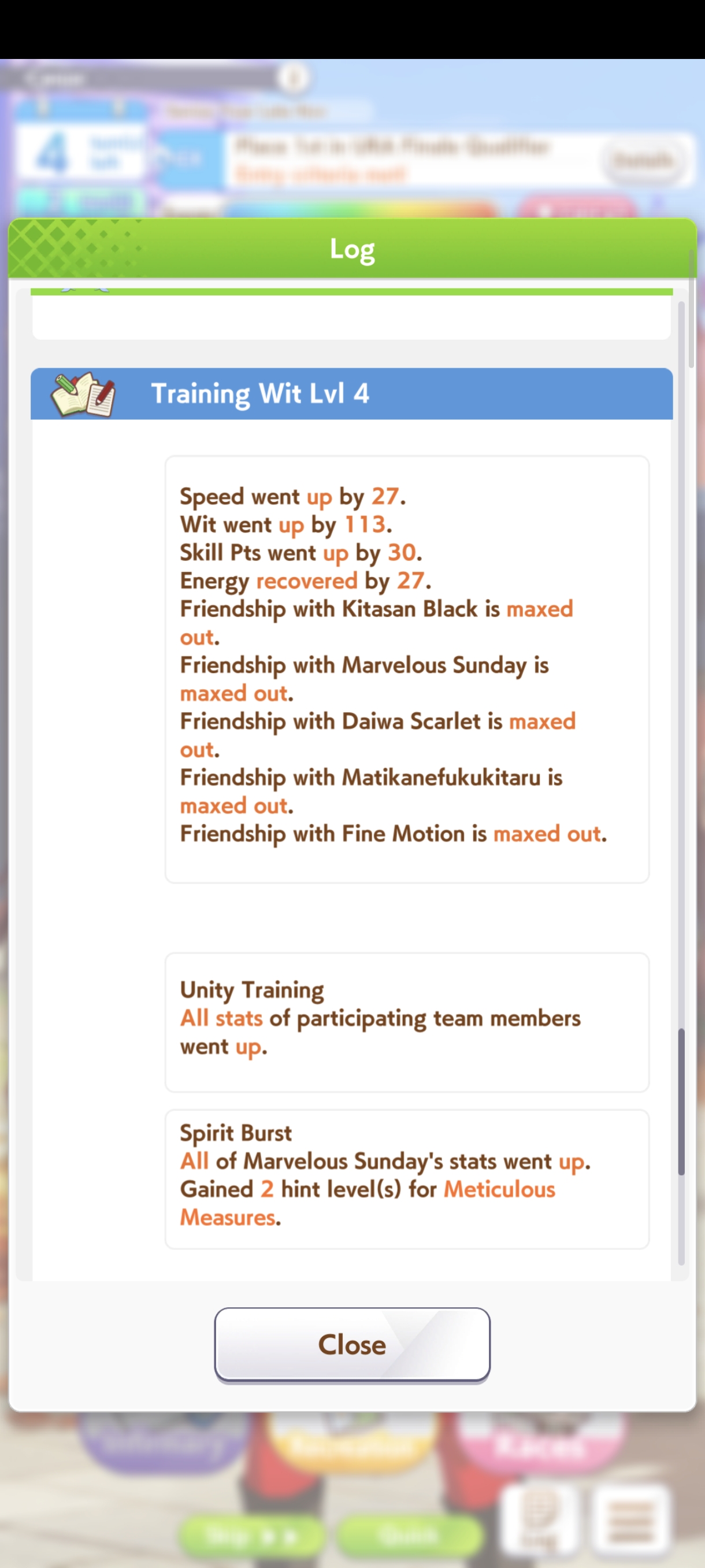 Иногда я просто не понимаю куда в этой игре деваются мои статы. Ну по любому с этими картами на спид и на павер как минимум очков по 150 должно быть сверху. И где они? Их тупо не было. Притом не понимаю, ну всё же хорошо то было и дружба быстро качалась и тренировки первый летний лагерь +100 спида было, две трени на +40 и +60, и так всю дорогу трени на +25 +30 когда были всегда старался брать. Ну да проебала пару тренировок с 5% вероятностью, но это уже под конец было и ни на что особо не повлияло. Гонок специально не много брал, чисто по минимуму что бы на ульту хватило, уж больно жирные трени на 30+ спида в те дни были. Вот не понимаю, трени жирные были а статов нихрена нет по итогу, как так то.