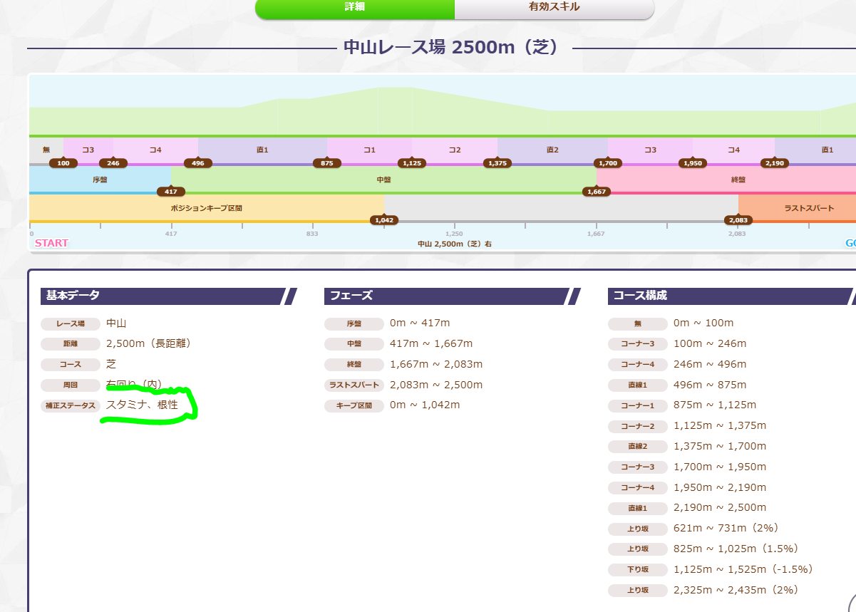 >>6280115 Это база, это знать надо. Тут инфа об этой механике в разделе 「コース係数(コース補正)とは」: https://umamusumeschool.com/course/ Посмотреть, какие статы участвуют в расчёте в этой гонке можно, например, вот тут: https://ウマ娘.攻略.tools/race/courses/10506 (см. скриншот)