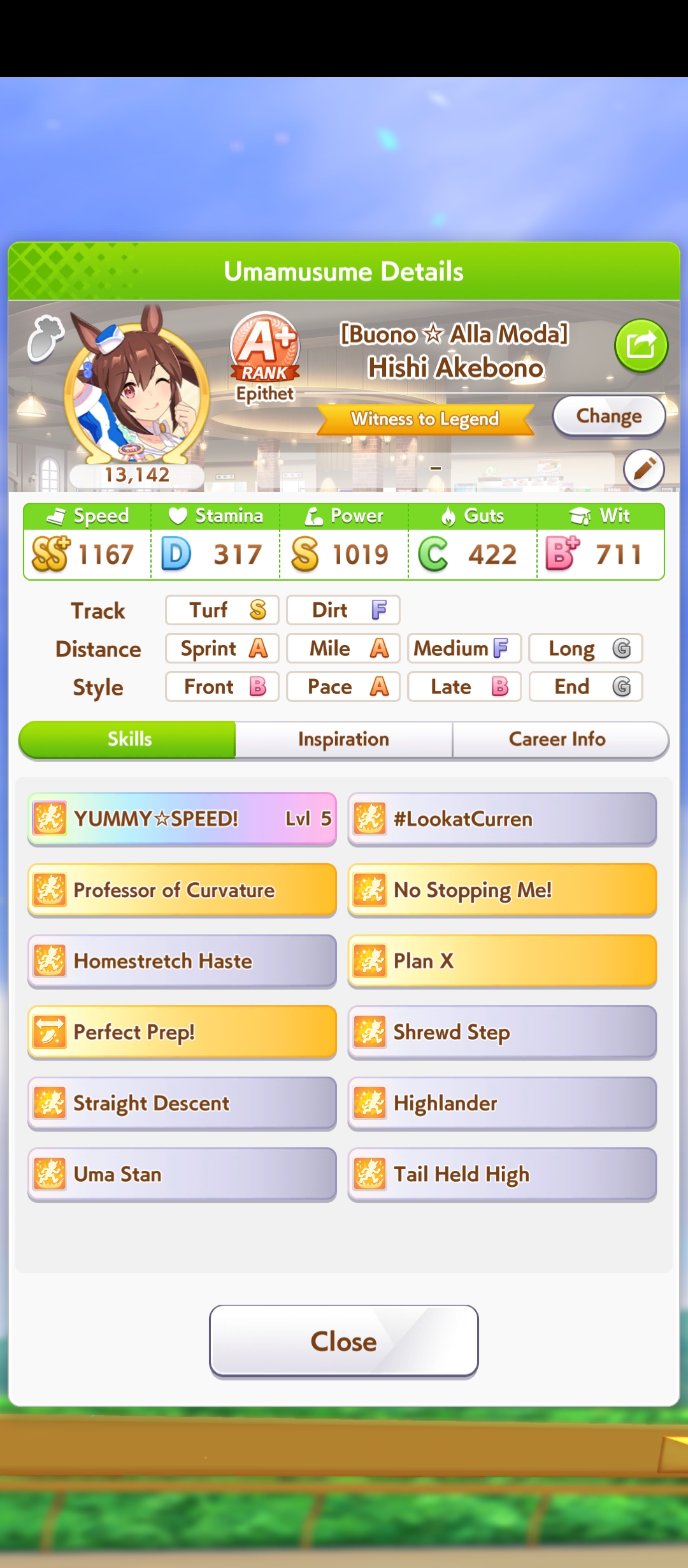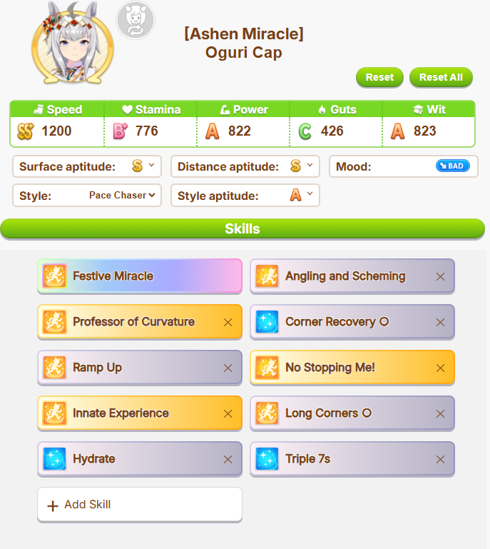 Владельцы болидов F1 aka Сакуры Бакшин, которые уже сделали её к турику, подскажите, такая сборка пойдёт или ей вместо Straight Descent лучше взять Straithaway Acceleration? Скидок прям жирных не дало и пришлось сверху пару допов сбегать. Планирую доделать ей как следует, но не шарю прям за полезные скиллы кроме рашин гейла условного на спринте и хочу Акебоно уже начать делать