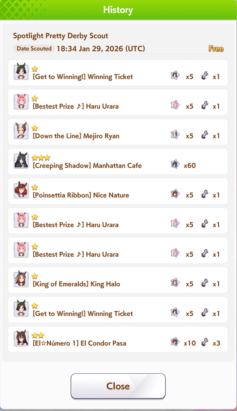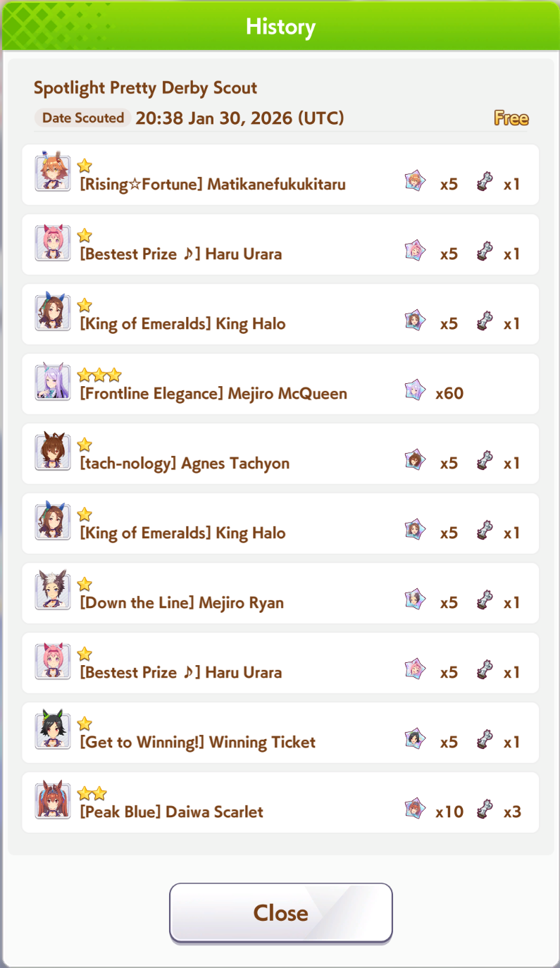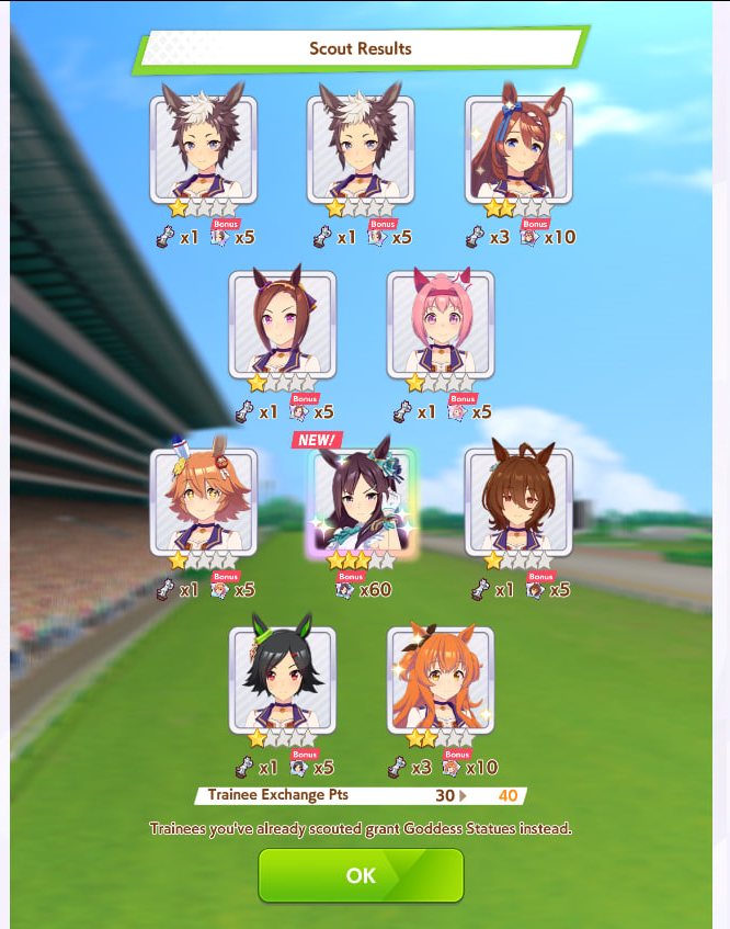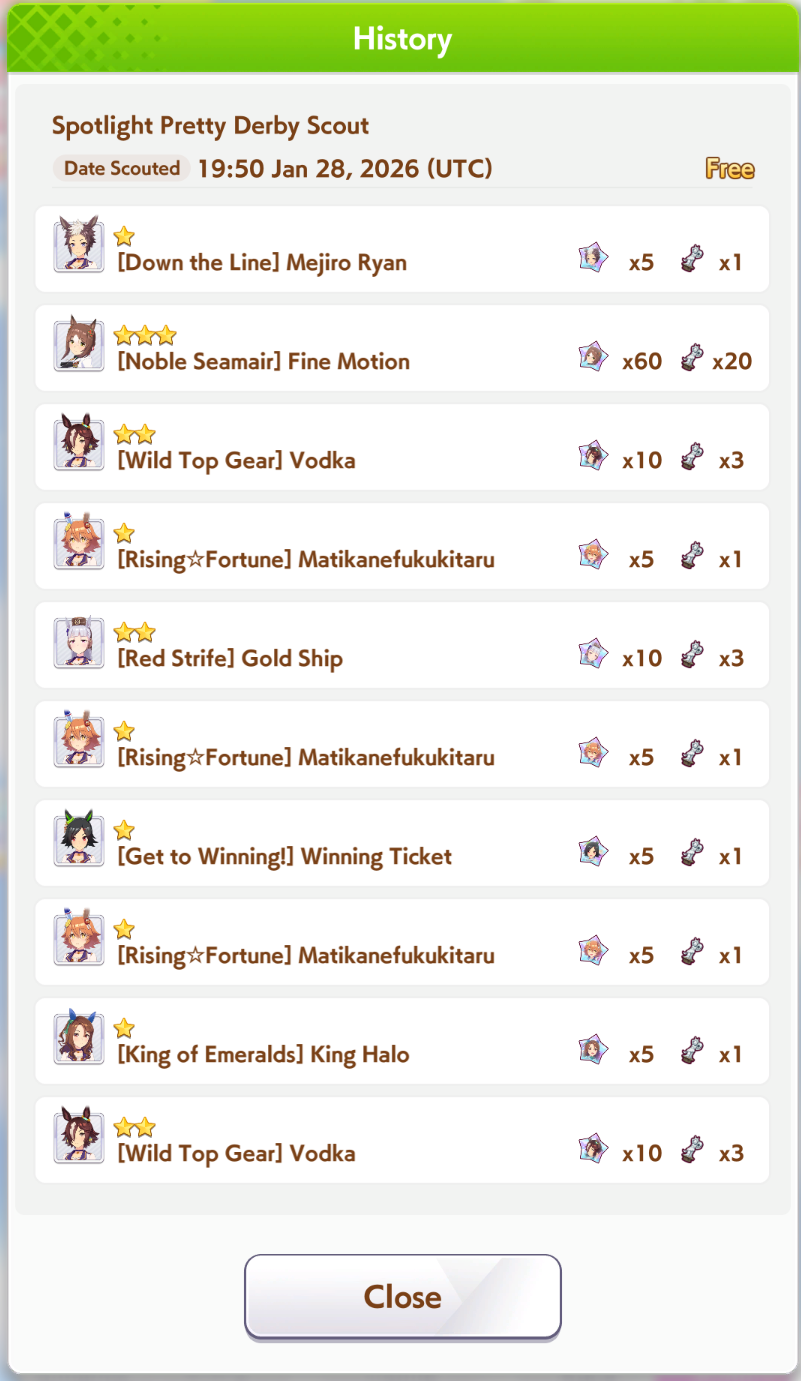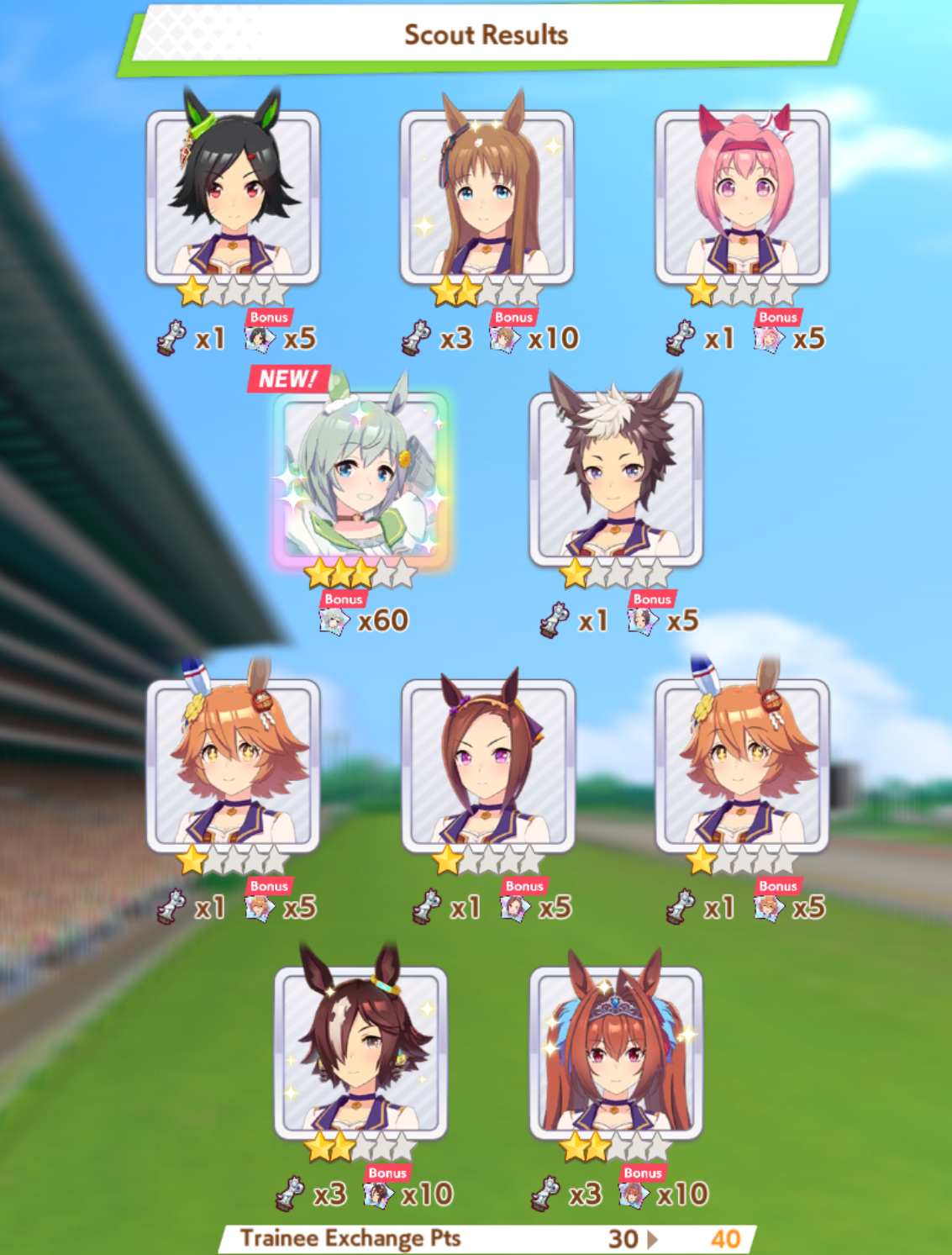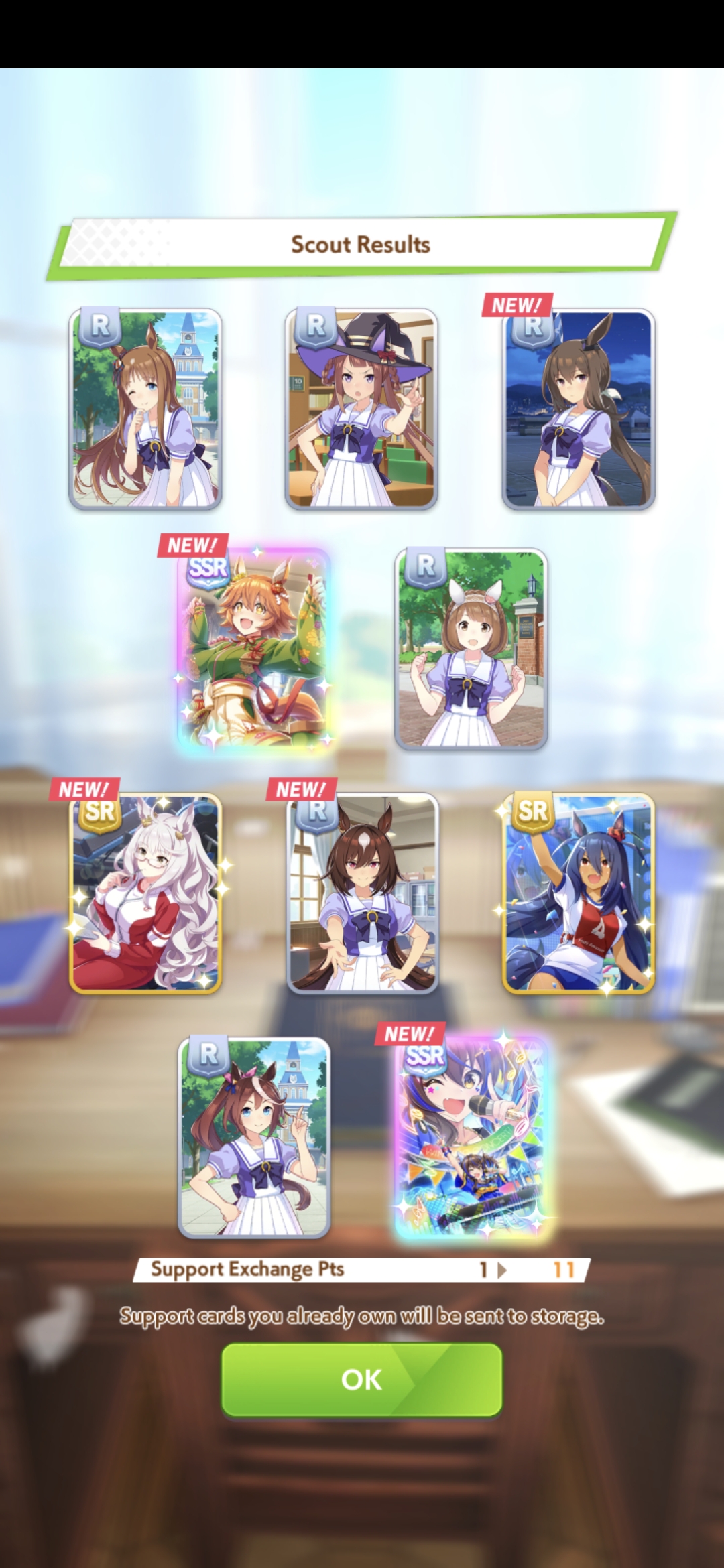 за 1000 круток +- получить целое нихуя из 1лб рики и 1лб файнмошен после реролла на китасан это сильно, так еще и лошади только с пити падают, зато обычная тейо в одной копии от 5 звезд.
