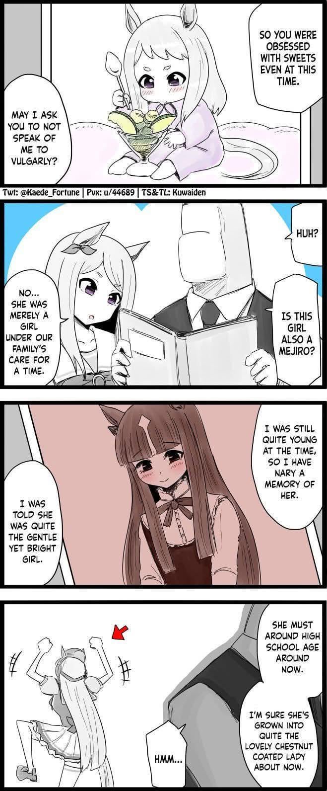 Тамамо на втором году карьеры выигрывает тройную корону, джапан кап и арима кинен, а в начале третьего спрашивает, готова ли она к большим гонкам. Глупенькая, ты их почти все выиграла.