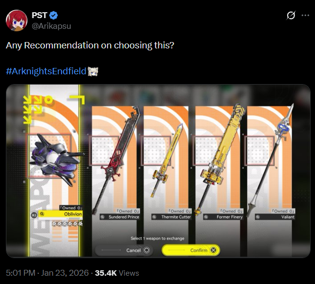 >>6271901 Подпишись на местных контентмейкеров в Скпорте и пролайкай все их посты Хз, может когда аккаунт зарегаешь там будут доп мисси. Вроде что-то такое было, я сделал там типо лайк поставить, написать самому чего и подписаться Ну и вот такой есть еще https://endfield.gryphline.com/activity/final-prep-orders?source_from=vk