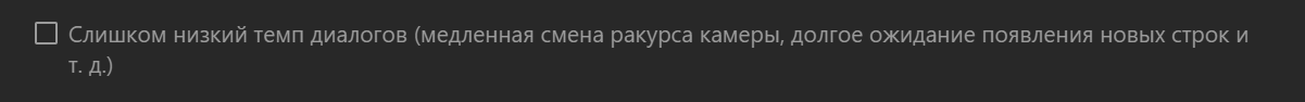 Лучше бы вува такое спросила, вот там реально одну линию от персонажа так растягивают на минуту, прочитал, нажал, и скипнул при этом 10 перемещений камеры между тягомотным произношением которые они вставили хуй знает зачем