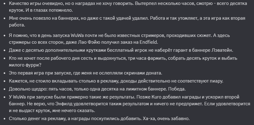 Поэтому я считаю, что база для гачи, например для эндфилда, ибо как видим он немного обосрался, это: 1.Селектор стандартки или баннер с селектором, какие нахуй 300 круток до выбора? 2. Первый лимитный баннер - гарантированная победа 50/50 Нихуя не убудет от них от этого или может я в чем-то не прав? Мне кажется так старт был бы получше.