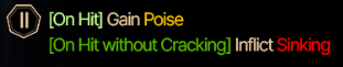 Пойз "чардж" ид, которая не накладывает синкинга и регенит СП при ударе по правильным целям помеченными скиллами. Насрано множеством микро баффов на скорость, оффенс лвл, дмж ап, пойз потенси/каунт и синкинг, которые принципиально ничего не меняют и собираются практически сами собой. 1 раз игнорит стаггер.