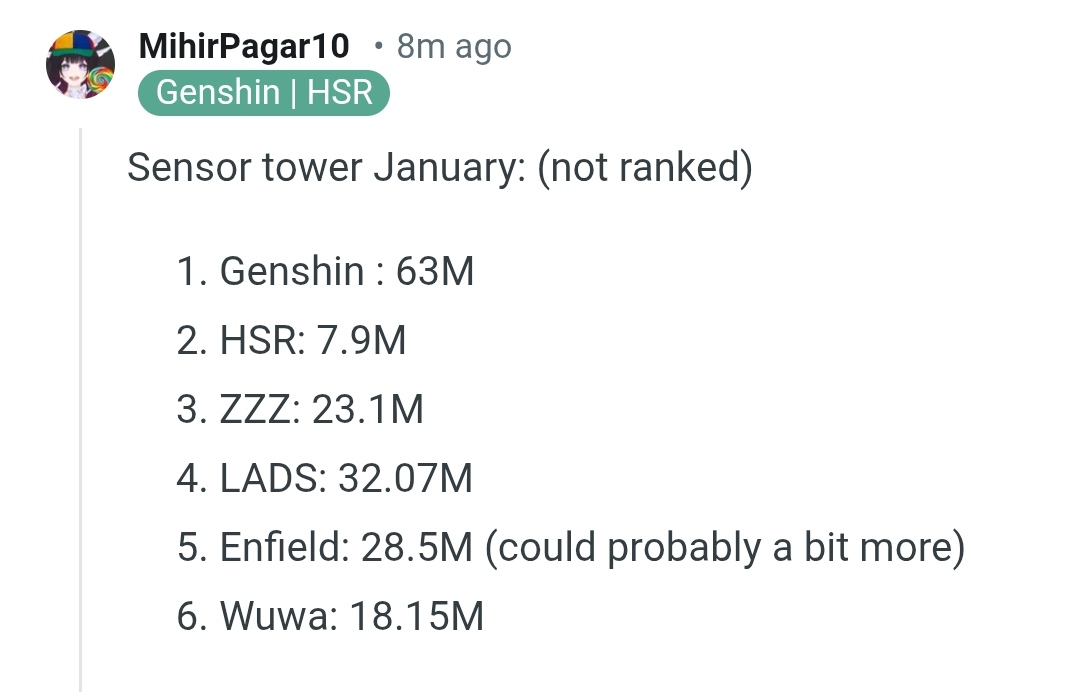 Честно, учитывая, как дешево выглядят локи, примерно такое место заслуженно, через годик-другой только там и будем, когда больше гач выйдет. Это сейчас из реальных соперников только дипспейс, вува, заводы и ляо.
