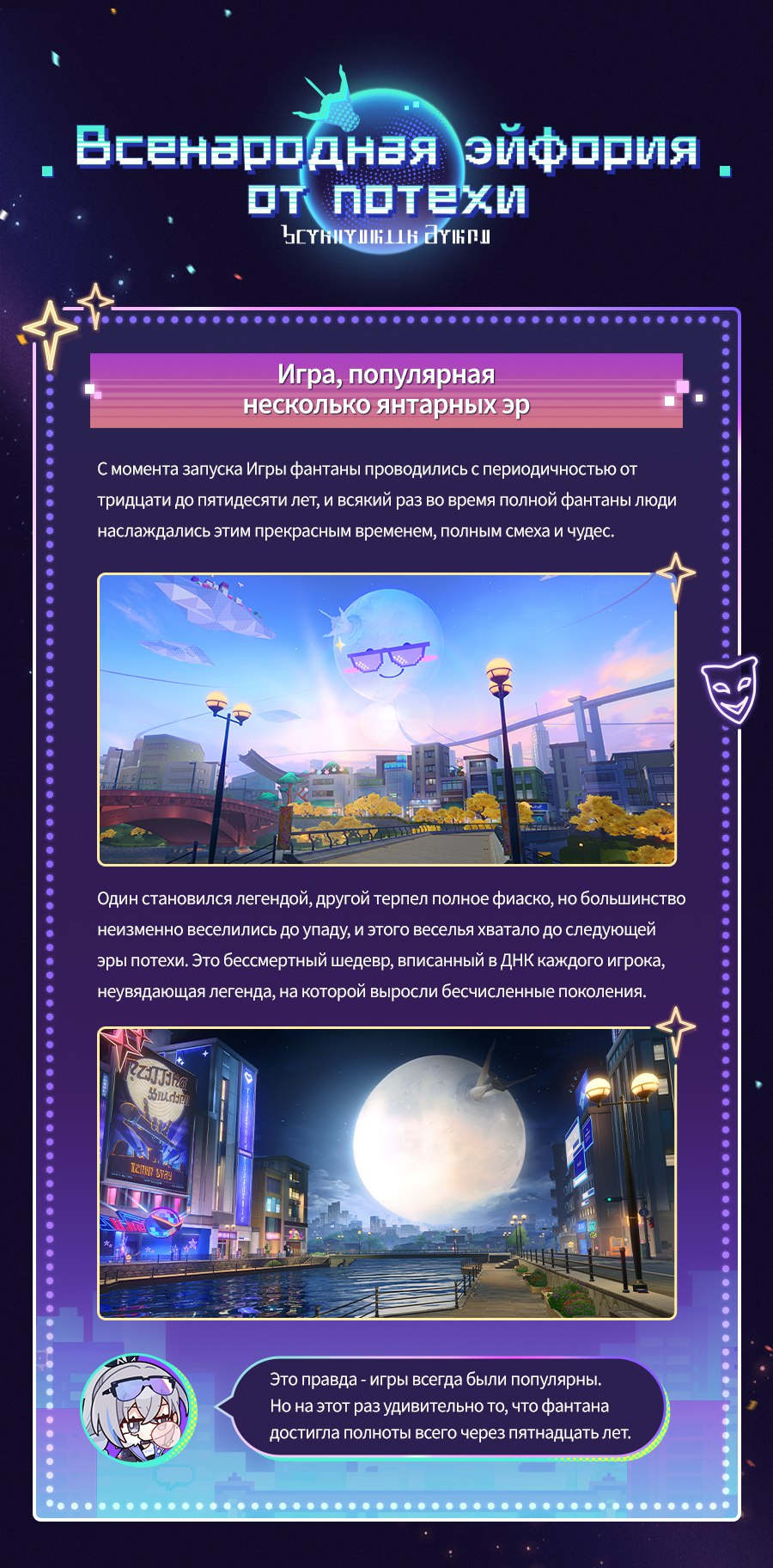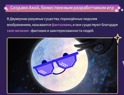 В 4.0 Двумерния – плоский пиксельный мир, куда стелларон закинул обломки древнего сервера, анонсы врываются как багнутые спрайты. Главный злодей Шаоджи, бывший кодер-отшельник, мутировавший в 2D-императора теней, плетёт интригу: крадёт слои реальности, заставляя персонажей жить в бесконечном сайдскроллере, где каждый прыжок – это лотерея на смерть.