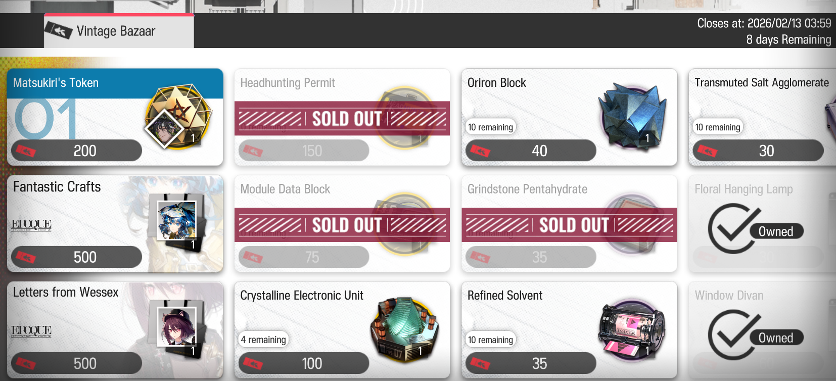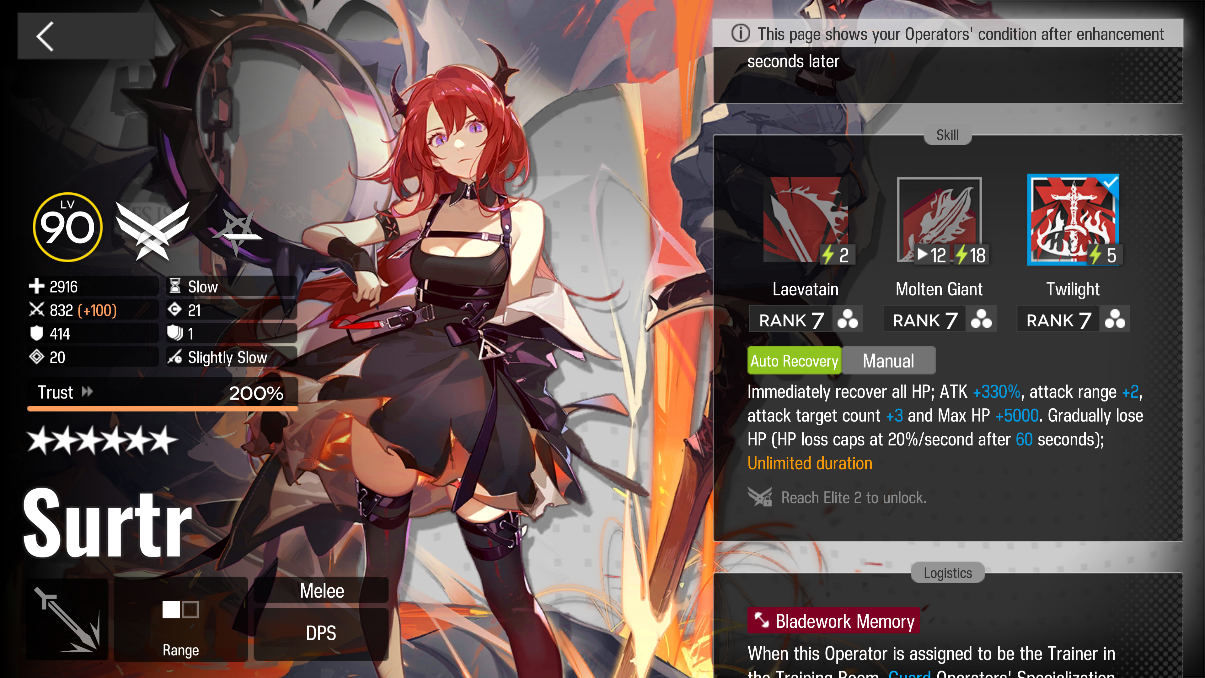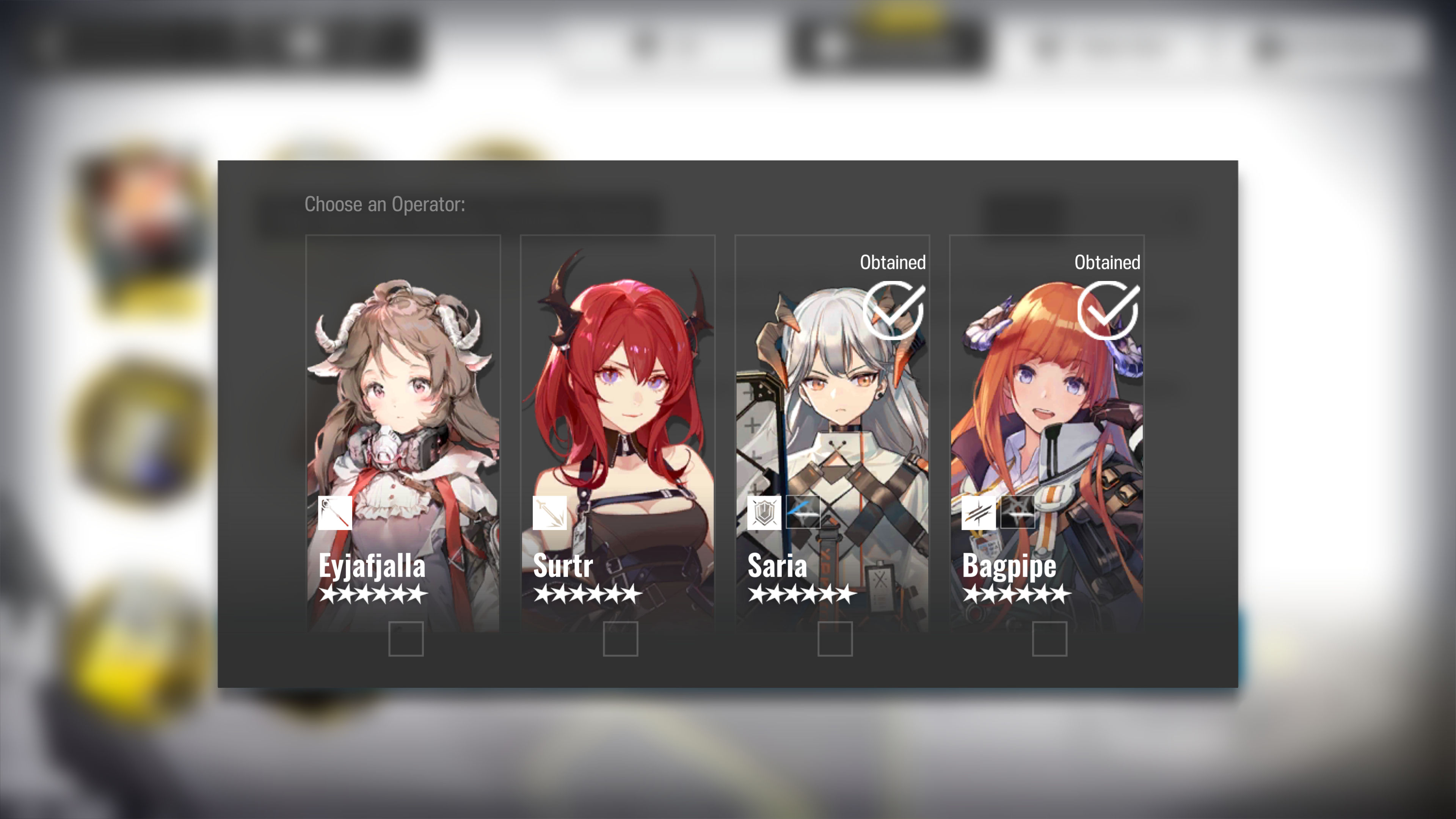 6★: Kal'tsit / Flametail / Blemishine / Surtr / Rosa / Weedy / Ceobe / Gnosis / Saileach / Schwarz / Hellagur / Phantom
