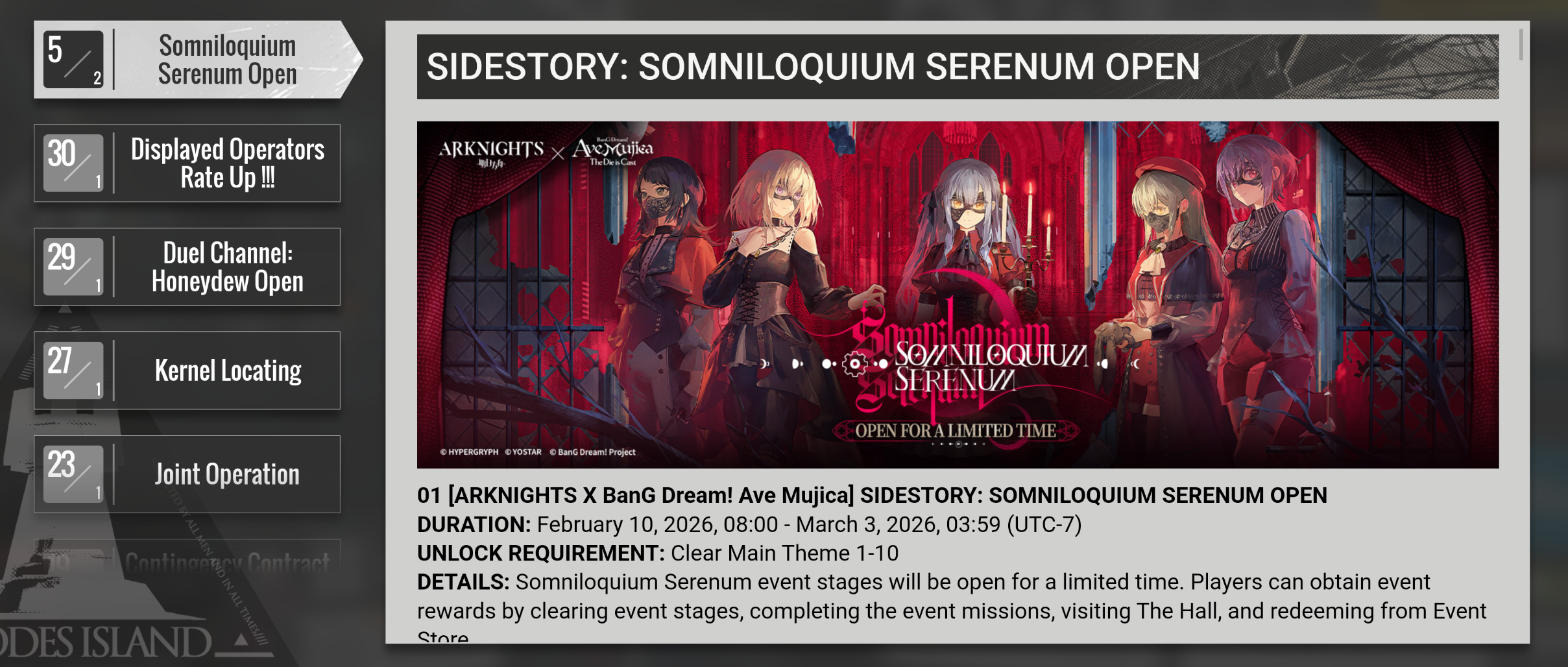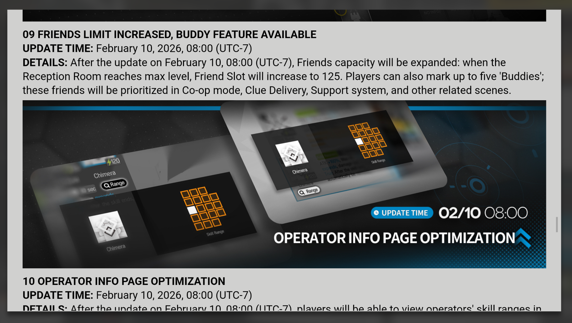 В игру был добавлен шестой сезон rogue-like режима Integrated Strategies: Sui's Garden of Grotesqueries, в котором вы можете получить бесплатно элитного оперативника Raidian и многие другие награды.