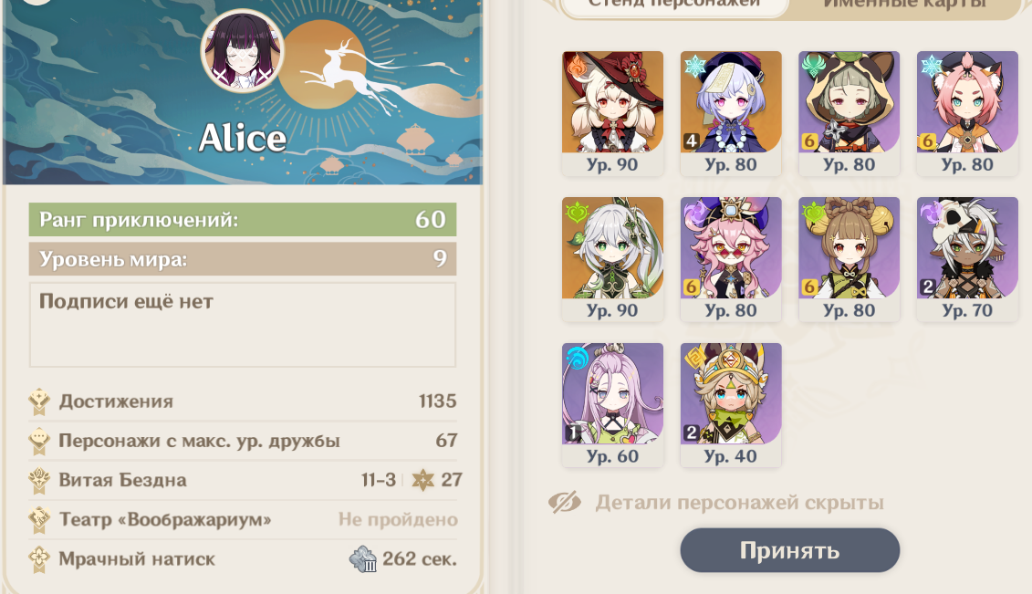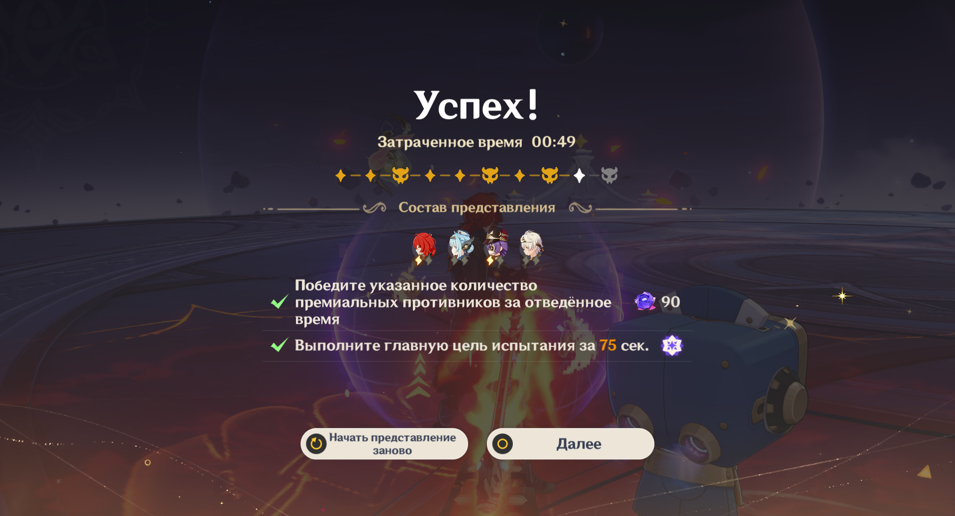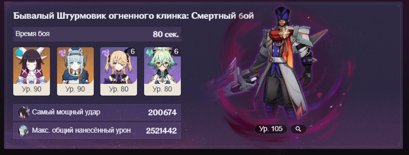 Я туалетом, фуриной, сянкой и Качиной в сете который баффает элеменальный урон проходил, спокойно закрыл. Ни у кого Сигн нету. Консты тоже у туалетного нету, только у Фурины 1 и у сянки 4. Без сянки тяжеловато было, а с пиро, там крутилка его режет ваще изи прошёл.