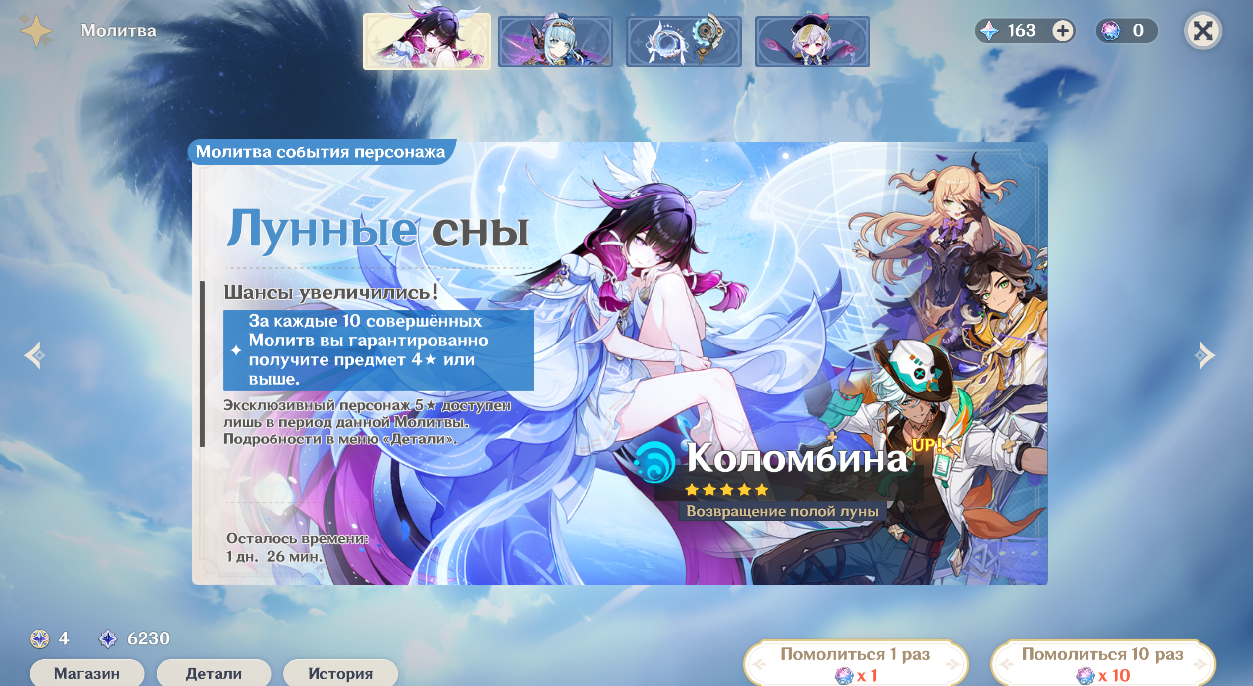 Алтарь Коломбины. До конца баннера 1 день. Рассказать о своих успехах можно со скриншотом, где видны последние 4 цифры UID. Напоминаю что в группе предзаписи можно выбрать свою картинку, подробнее тут >>6190926 →.