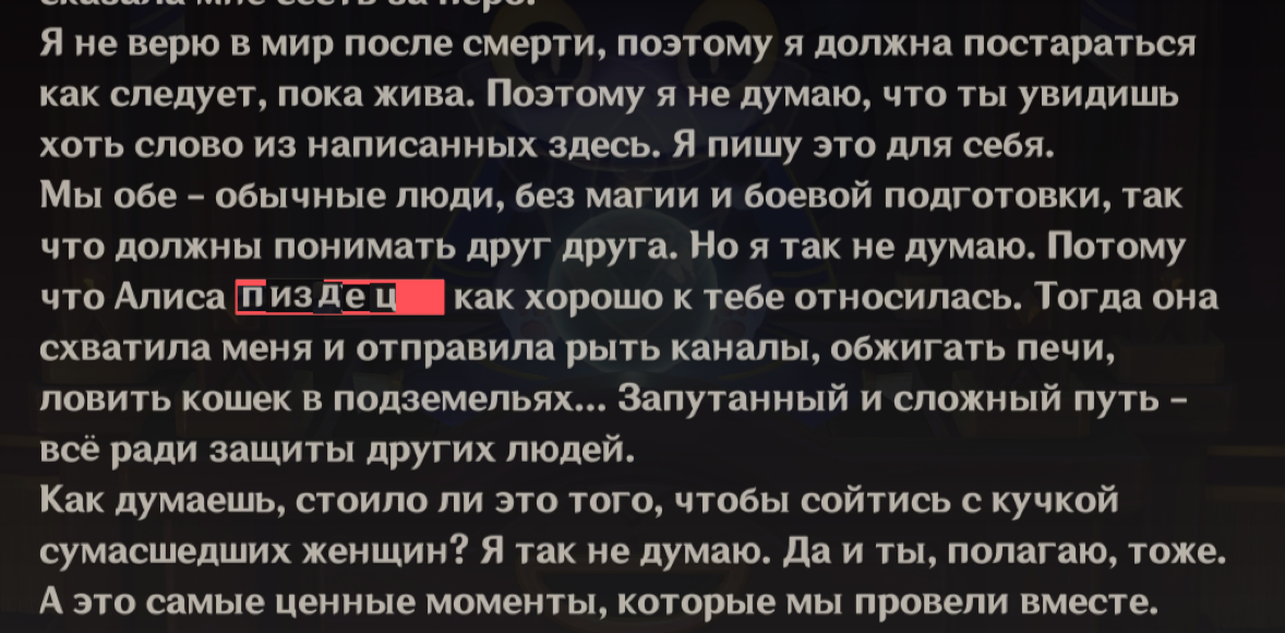 Вообще когда я увидел дебош этой энписюхи в ресторане, я очень сильно удивился. Так подать персонажа, чтобы цеплял, аж с первых трёх диалоговых слайдов - ну это круто. Я буквально прогрелся нпц, но оказалось, что в ней просто дух Лошади сидит. Что одновременно хоть и прикольно, значит Лошадь точно крутим, но с другой стороны это значит, что энписи в игре так и остаются скучными и унылыми по большому счёту
