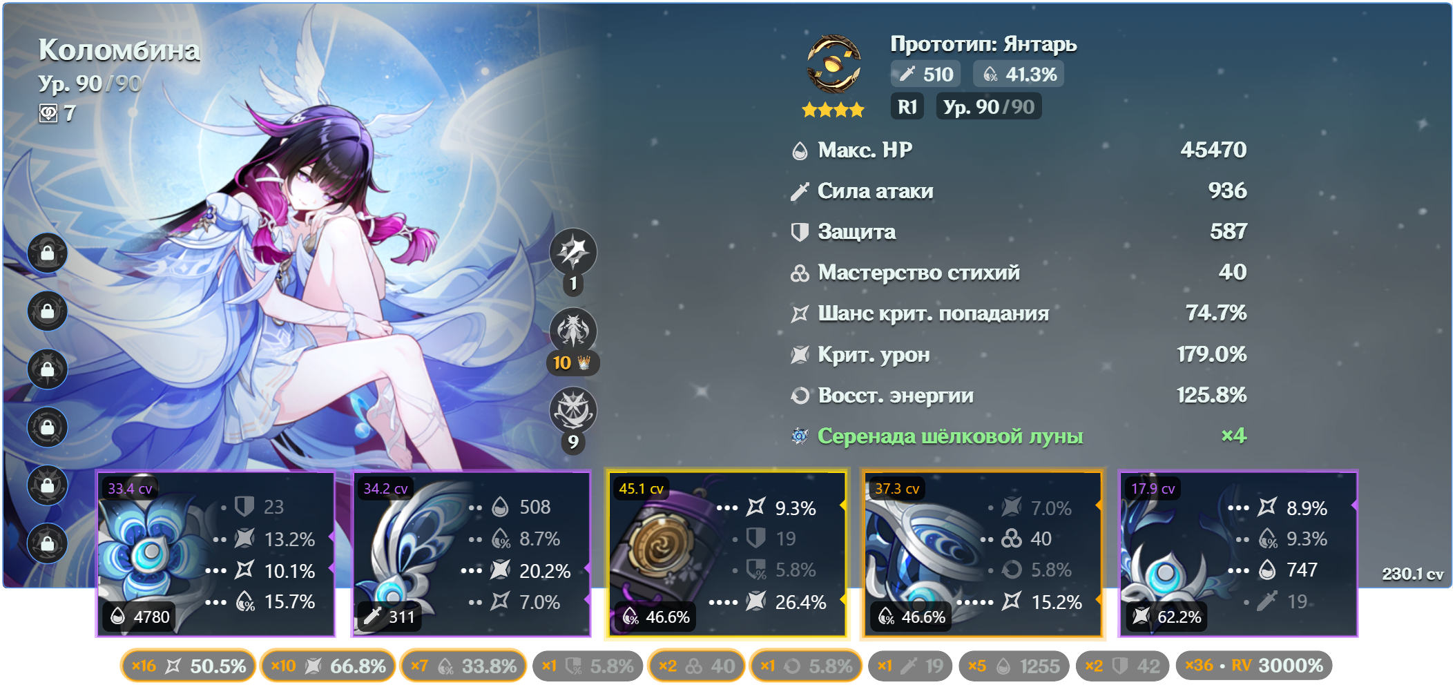 На арты больно смотреть, а профильный сет будет фармиться сто лет, капец. На Инеффу правда быстро собрался, но больше такой халявы явно не будет. Серенада не очень актуальна, ведь этот сет носит Айно, мда. Каталик оказался весьма неплох, вместе с Айно в отряде выходит почти 40к после активации ешки.