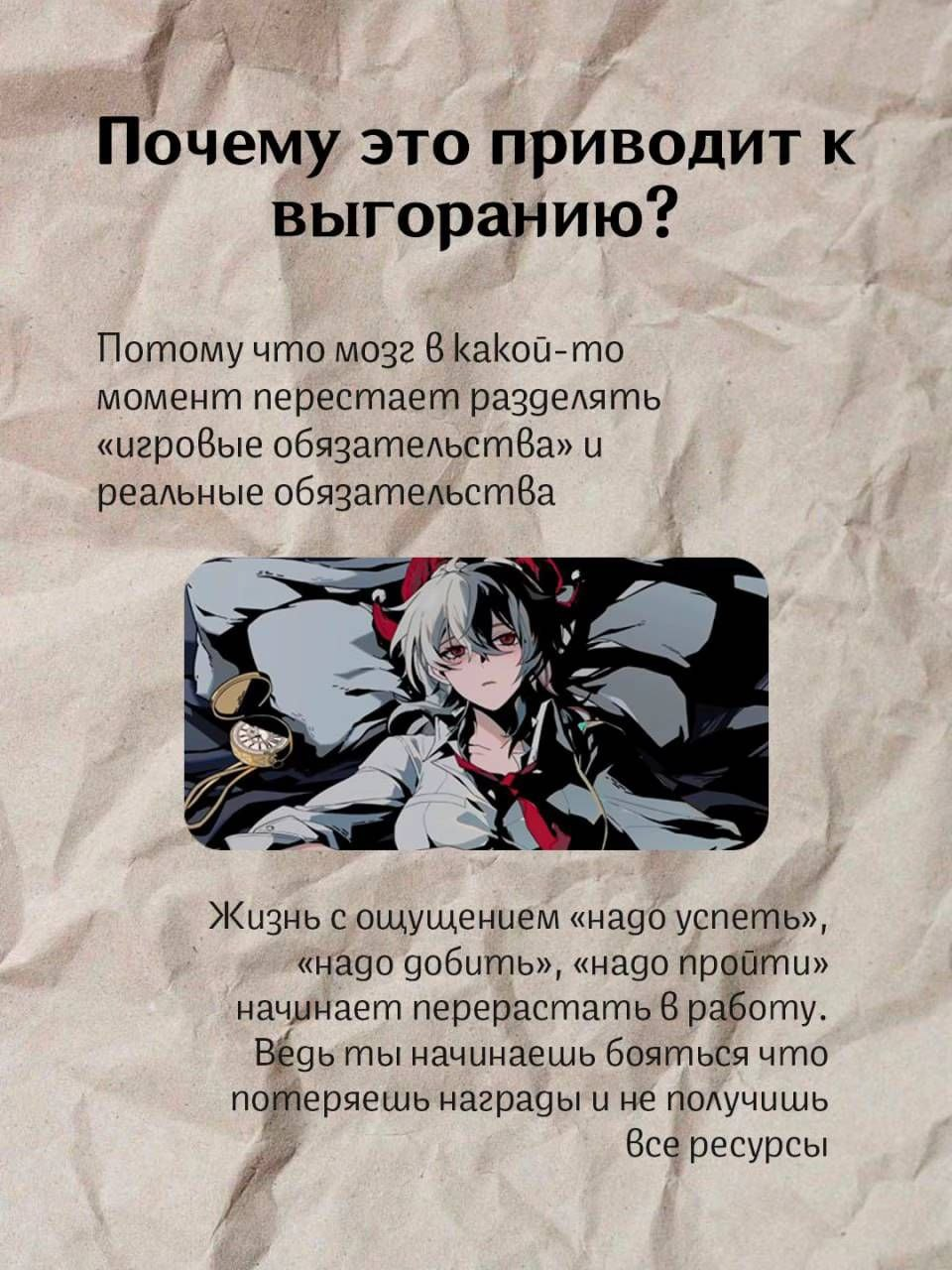 >>6322047 Это просто выгорание, найди что то новое Если меня что то увлекает то могу ебашить целыми днями пока не заебет Так было с вовном в 14 а потом снова в 21 и 25, с анимцом в 17, с парадоходрочильнями в 28, а буквально всю прошлую неделю не вылезал из ендфилда