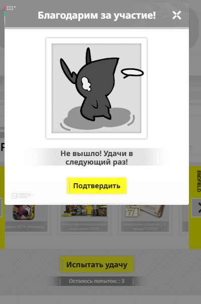 >>6322881 Хз, у меня на первых 4 билетах дропнулся какой то мусор, а на всех последующих перманентное НЕ ВЫШЛО. Такое чувство будто там что-то сломалось.