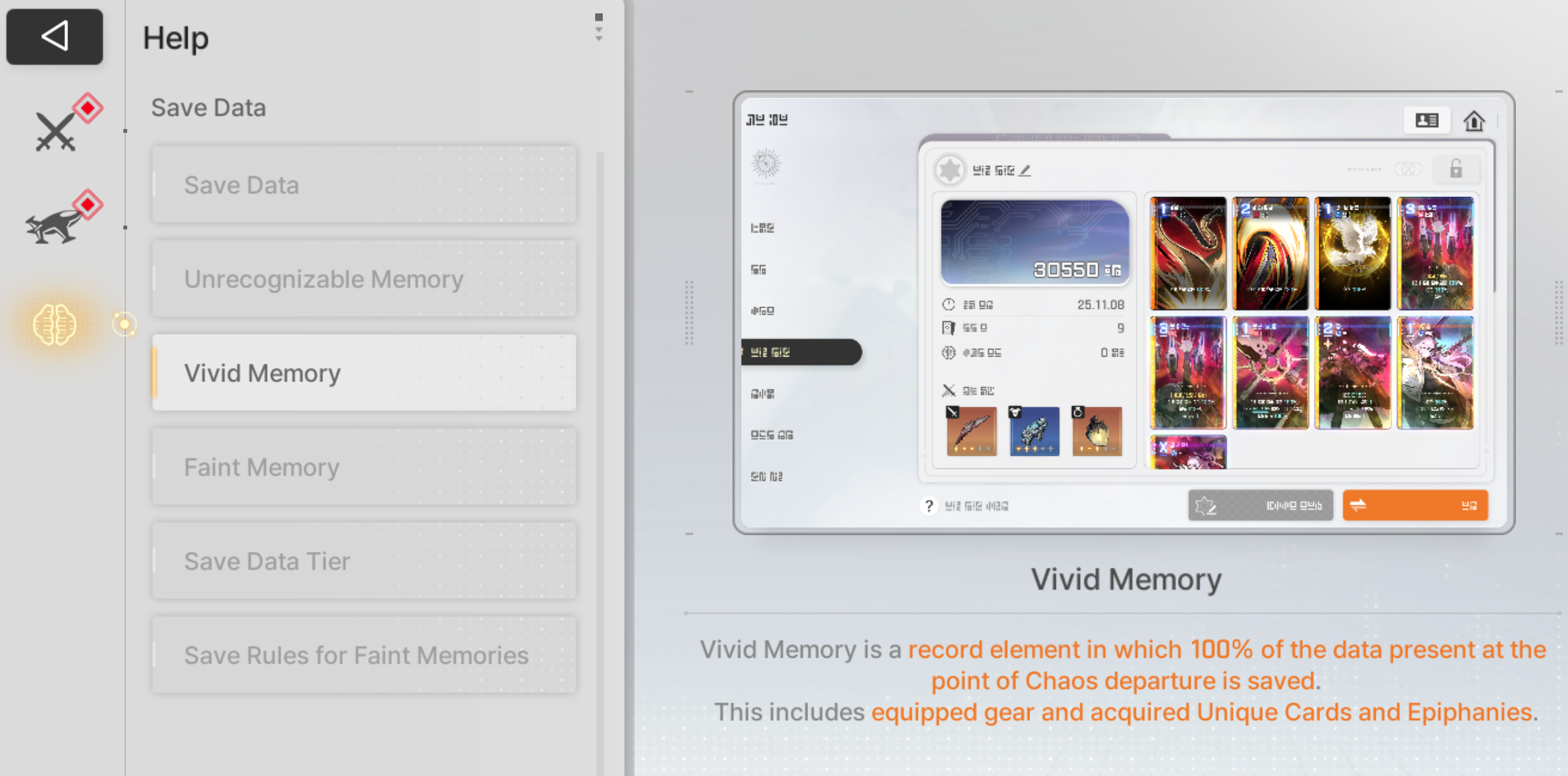 Vivid Memory is just what the game refers to things that get saved without costing anything or having any restrictions. It includes the equipment (weapon/armor/trinket), the character's regular cards and their upgrades that they get from epiphanies.