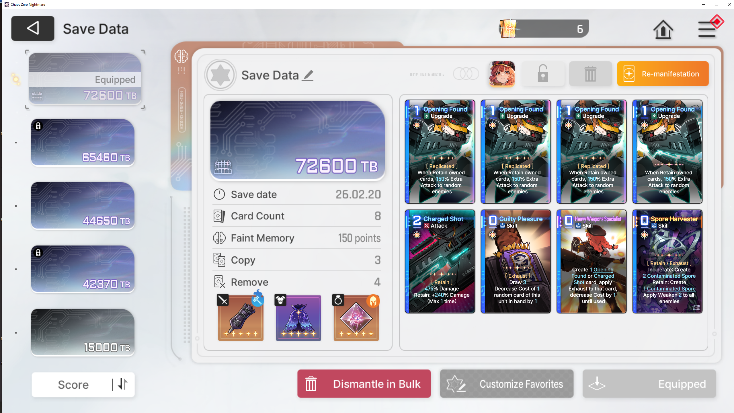 >>6383136 В хаосе открываешь статы персов, там будет написана текущая стоимость колоды, например 120/140. Сейчас первые две копии стоят 0, удаления базы стоят по 20, удаления остального 0. Поэтому все достаточно просто.