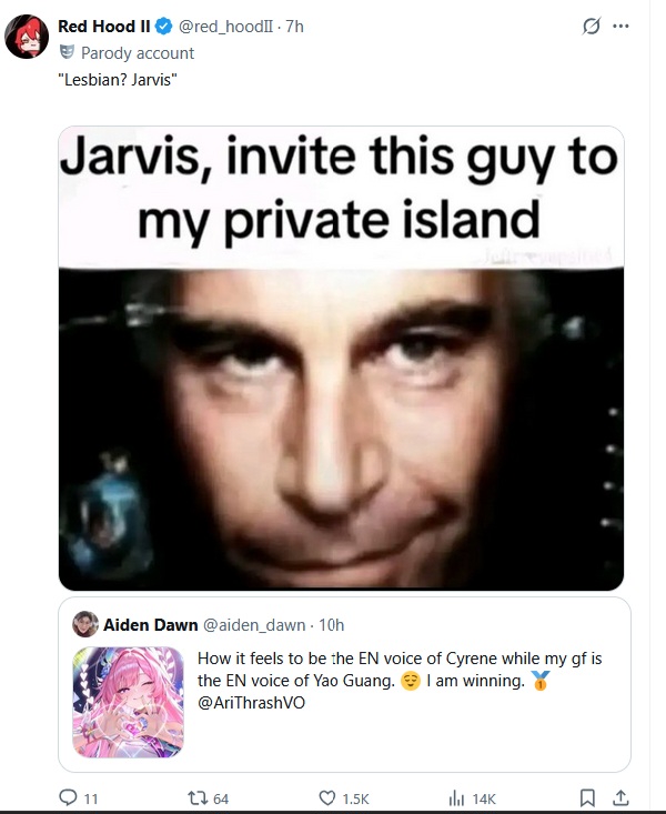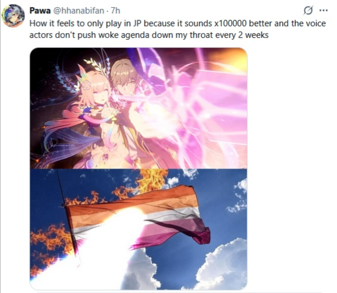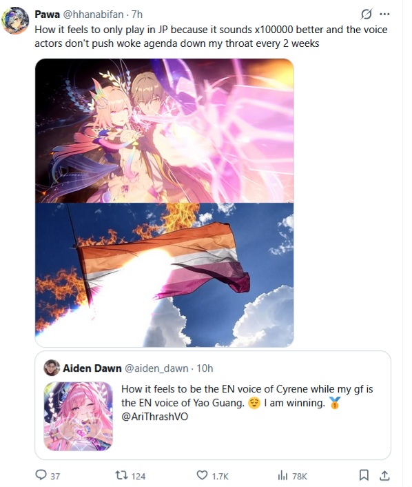 Я бы вообще если бы был вувёнокм, горел бы, что то, что должно отсылать на "родного" чара, отсылает по итогу на чара другой игры, прям реально позорище ебаное, разраб наплевал на собственного же ребёнка.
