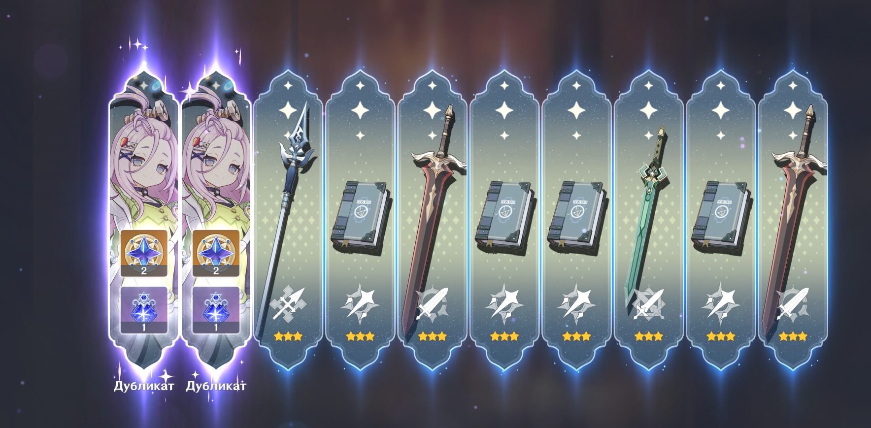 >>6329192 Нормально, пока ловил С6 Иллугу, словил пленительное сияние и С1 Лошадб. Оружие достал без протыкания об стандарт или оружие Нёвиллета. По круткам было 382, осталось (с учётом нападавшего кэшбека) 180. Пожалуй, остановлюсь на этом, надо сохранить крутки для будущего гео-саппорта под кристаллы. Вот такие вот ребята вышли. Поставил в театр, мало ли, кому потрогать хочется. Тред полистал, но свежего поста господина алтарьщика не нашёл, потом отмечусь тогда. Вот.