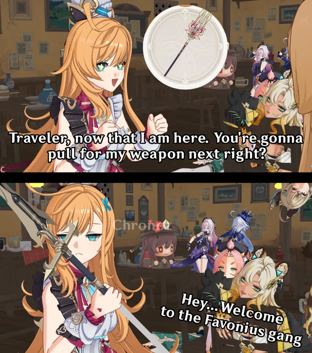 А чего тут, получается ГГ скоро пропишется в Ирминсуль, и досвидос межзвёздные путешествия? ГГ уже и Тейват домом считает. >>6330720 У Нефер чарджухи - так и хочется дождаться пока анимация кончится, а не кэнселить.