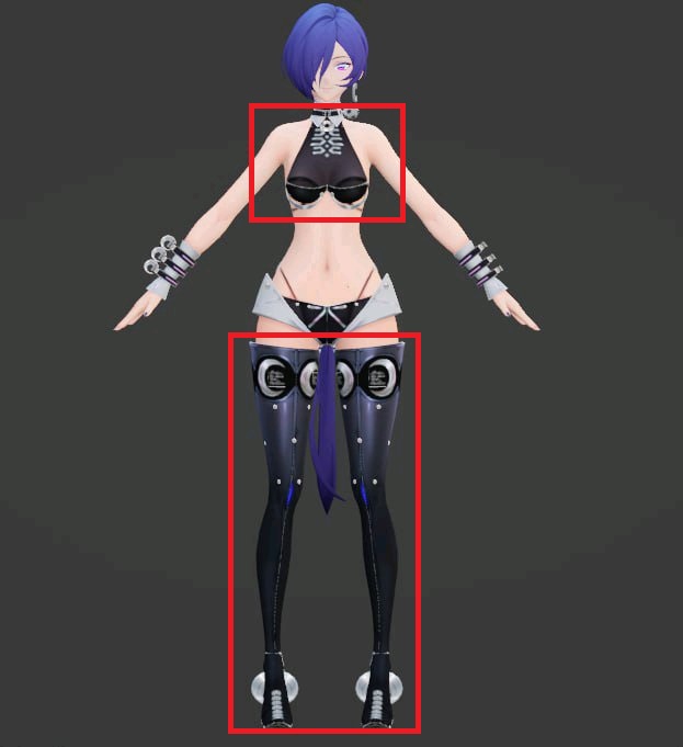 Буквально как-будто дизайн код любой китайской гачи. Плюс куча непонятных элементом в той же одежде. Шорты не шорты какие-то хуй пойми что, лифчик этот тоже с какими-то лесенками - я хуй знает. Это должна быть повседневная одежда персонажа, но такое калище. Просто хотя бы сделай нормальные но ситльные шорты и нормальный стильный лифчик. Ну чуть дизайнкод смени.