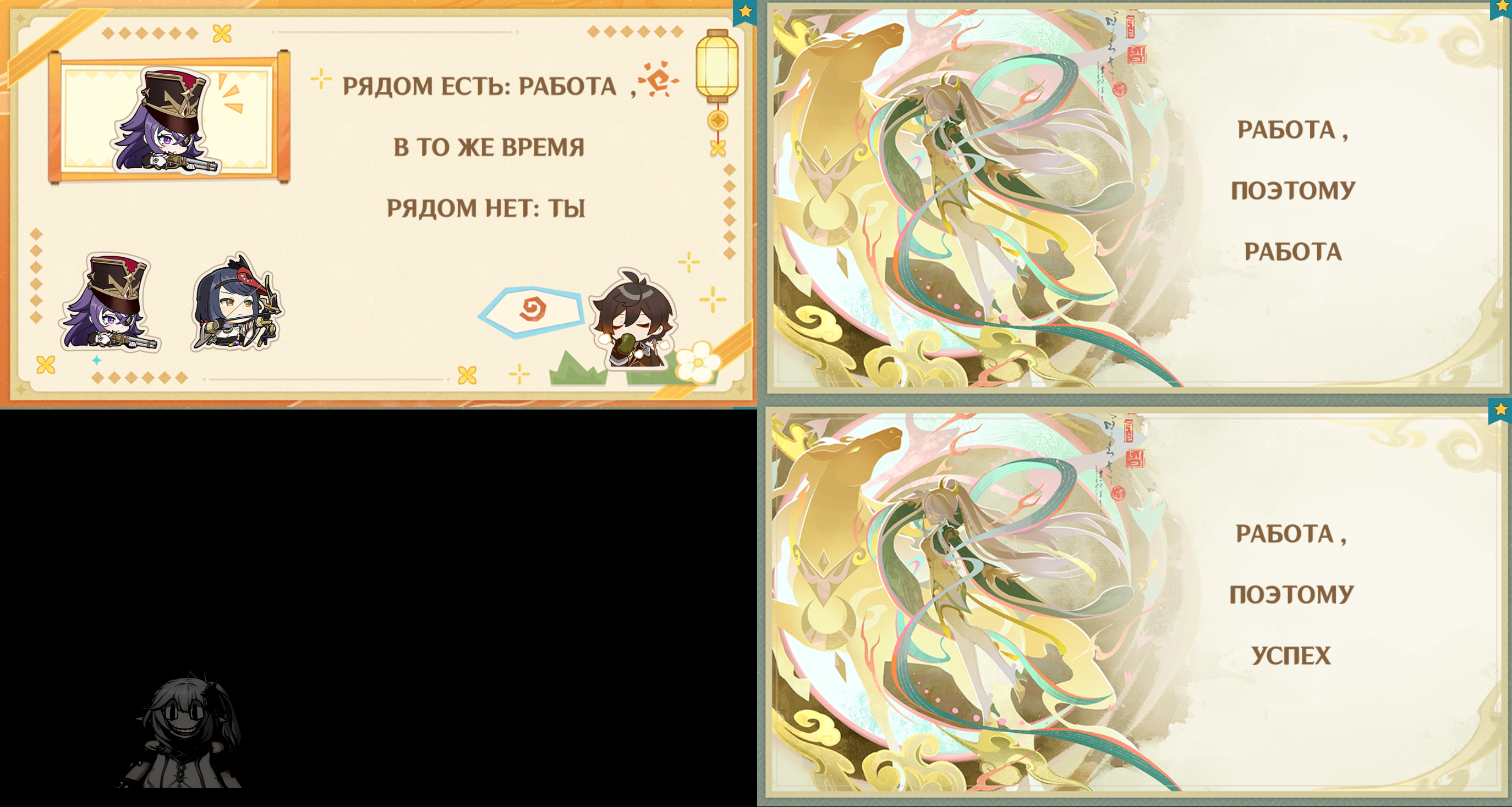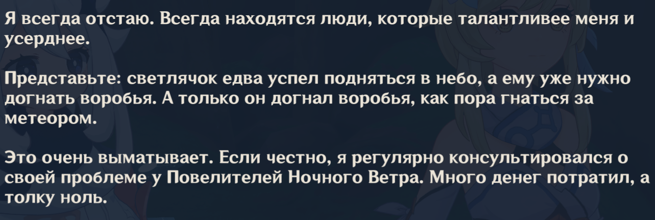 Из-за треда мне сложно воспринимать эту фразу прямо. Особенно в контексте первой главы ивента, где про Чжуна Ли все говорили как про очень желанного гостя, ради встречи с которым многие готовы отдать последние штаны.