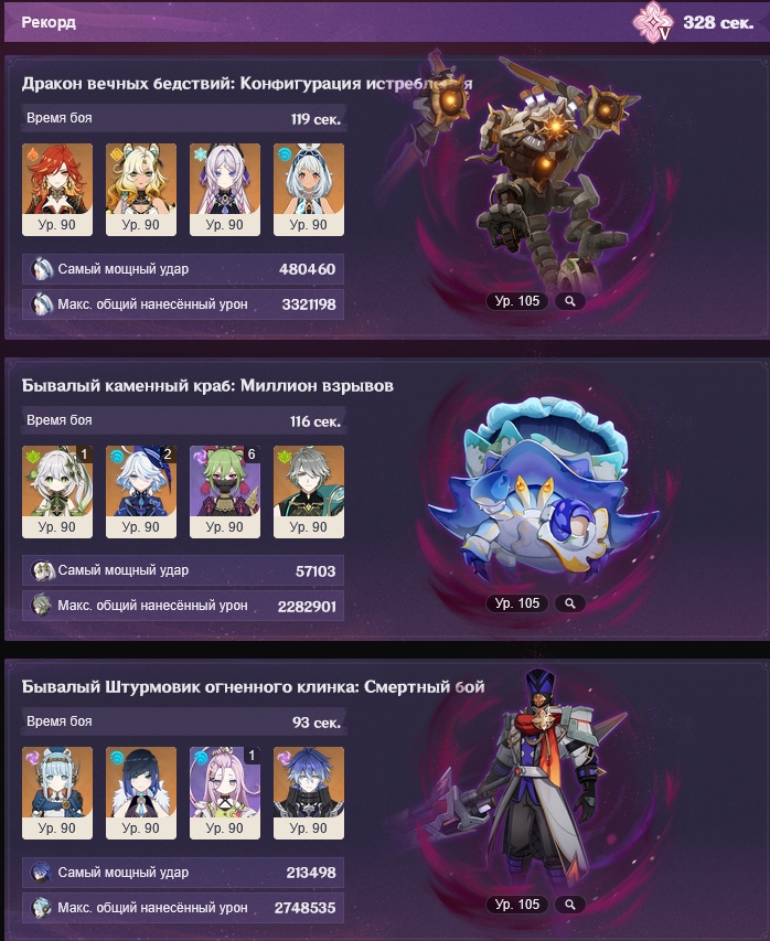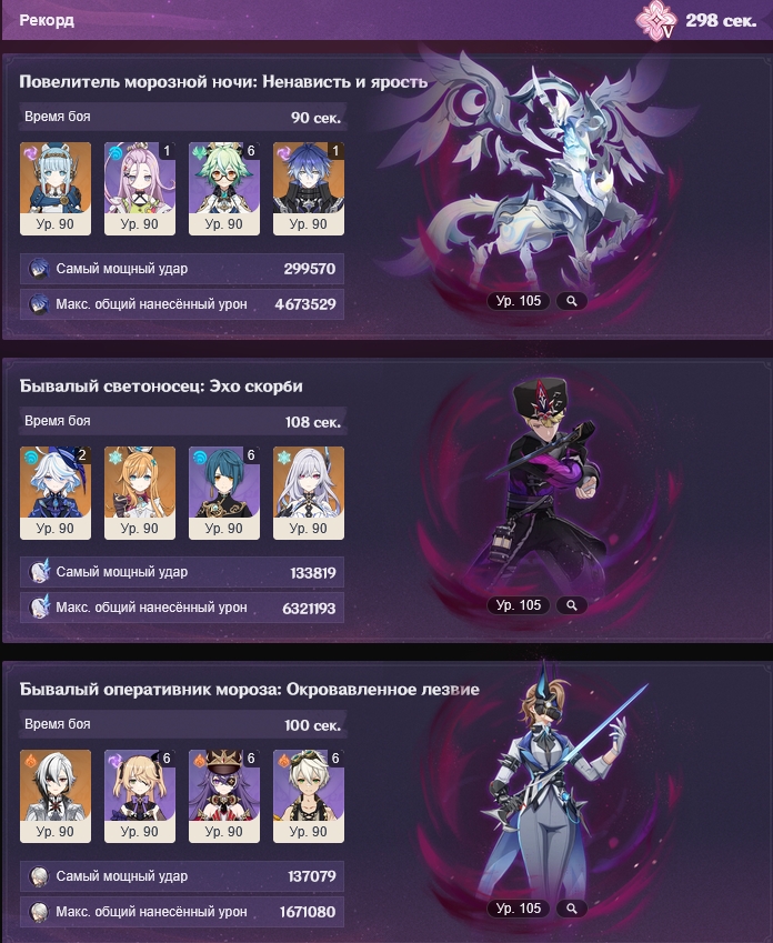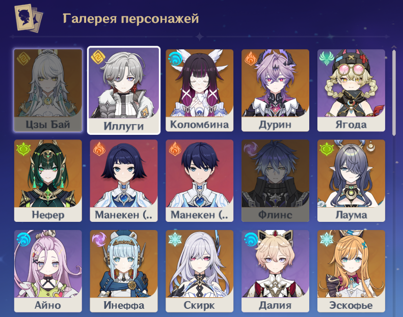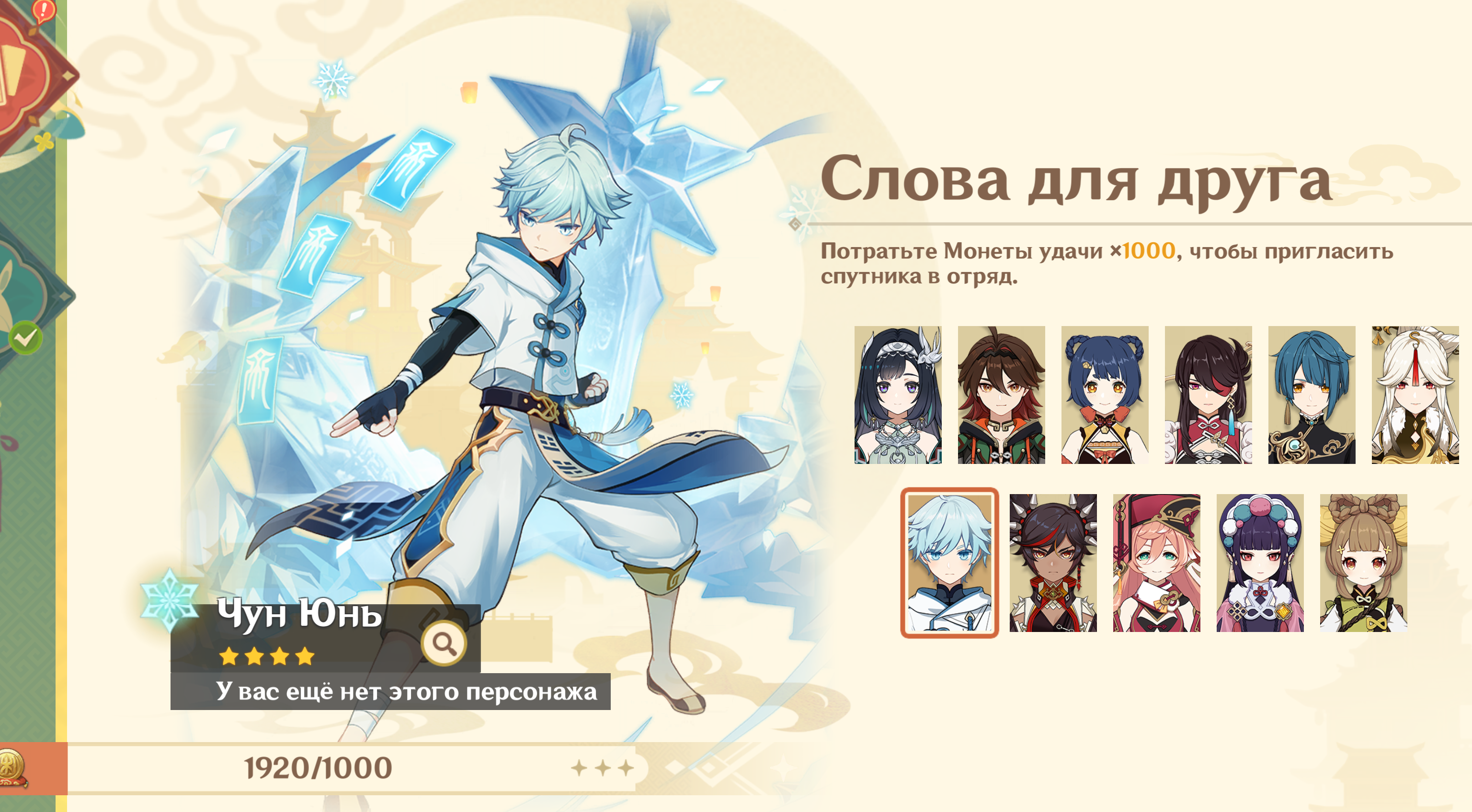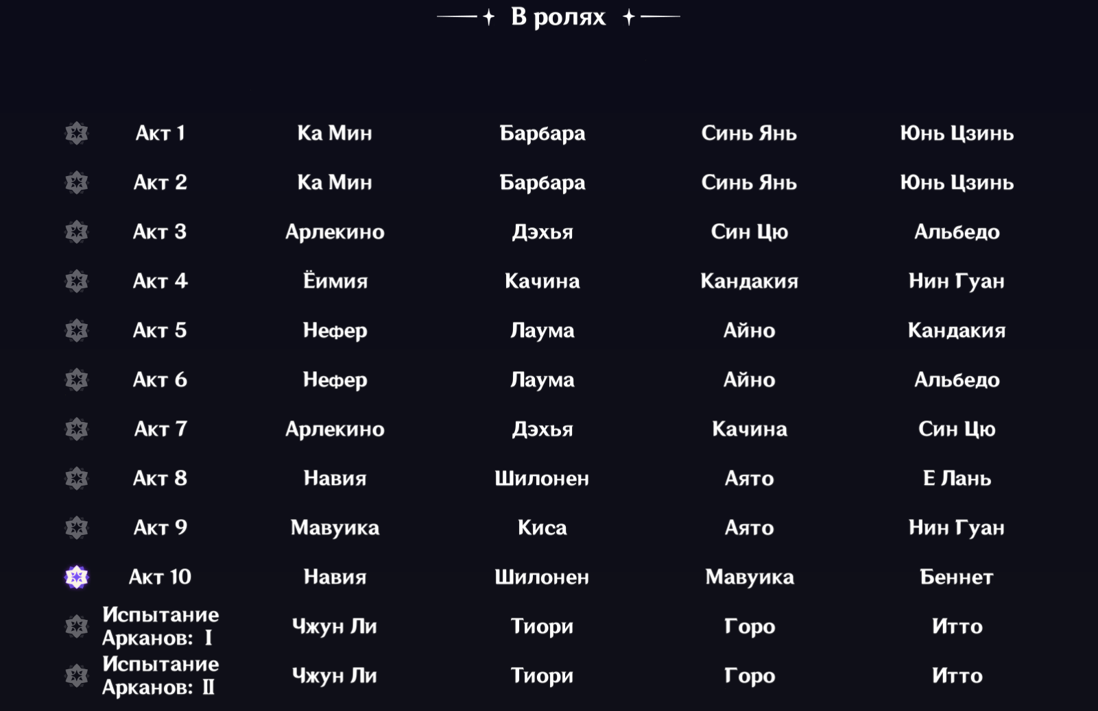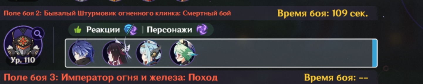 Это 2 слота, третий допустим идет под Айно. Остается 1 свободный для хила или щитов. Но у меня только Ноэль, Барбара, Куки и Яо Яо из хила. Еще забран какой то гидро китайчонок с ивента, его тут советовали как мастхев.