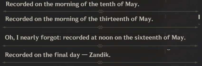 Но также в дальнейшем в нашей новой колонке вы узнаете, кому выгодно видеть мелюзин без штанишек; кто украл у леди Фурины тортик; что на самом деле скрывается под видом безобидной Фонты? А также сенсационные кадры нашего репортёра с острова Морт, что на самом деле происходит руинах форта Харбида и кому принадлежит данный остров? Всё это и немного больше - в нашей новой постоянной колонке - криминальный Фонтейн!