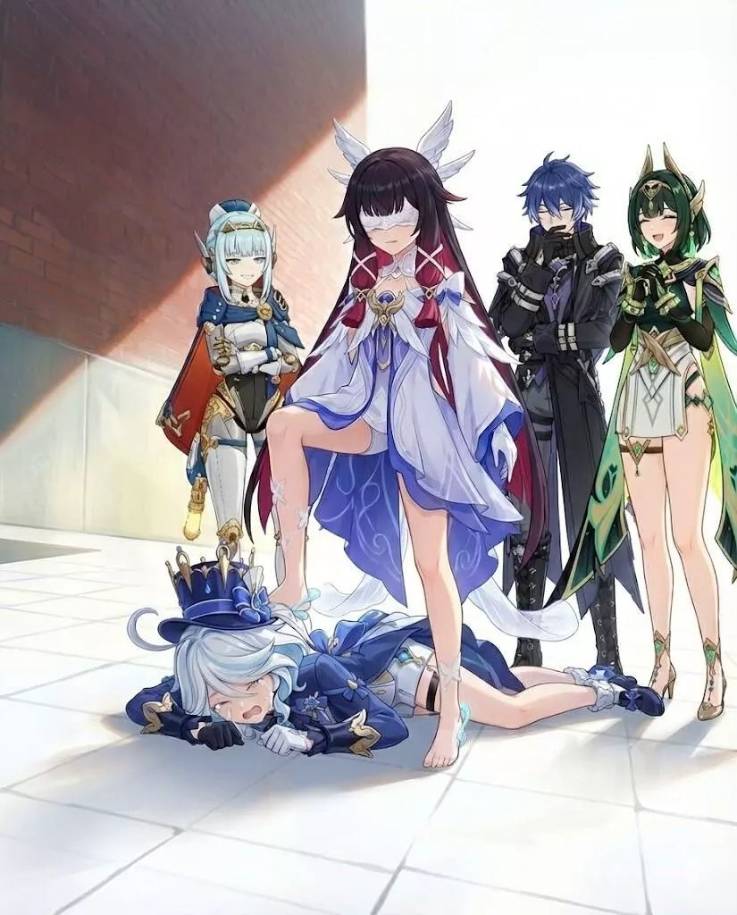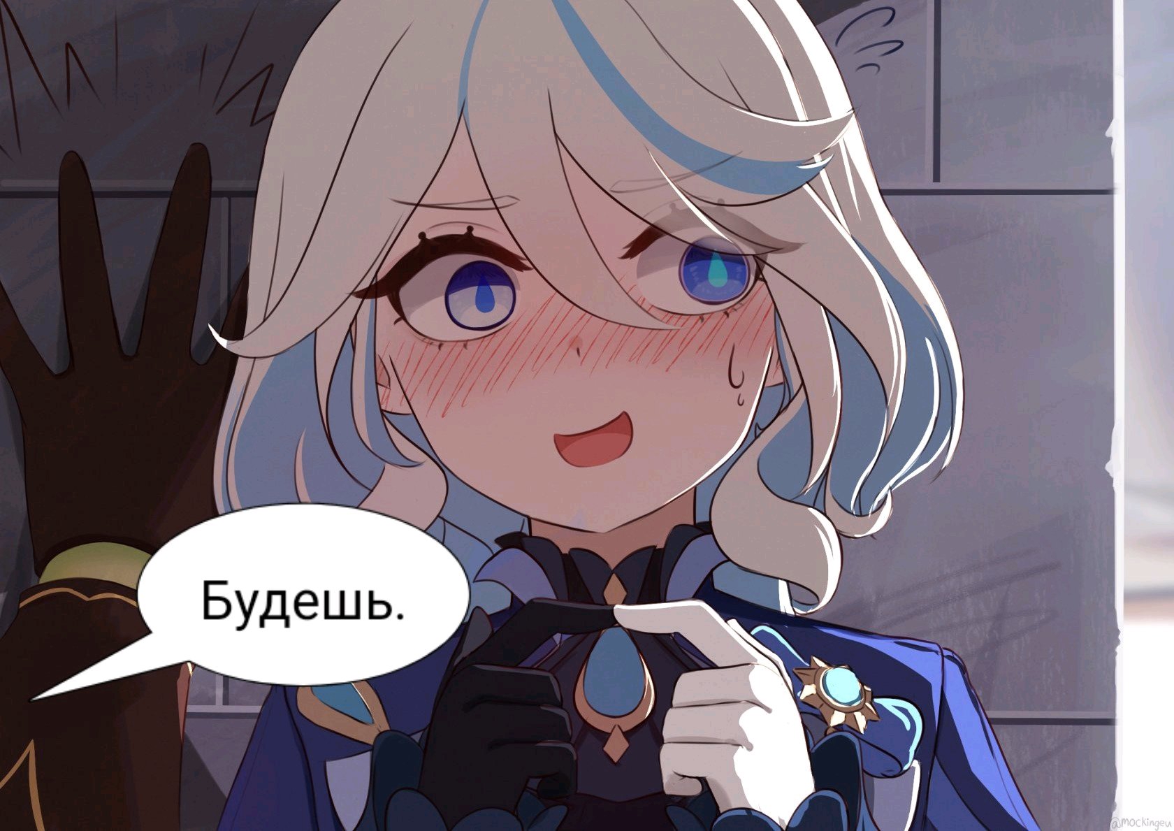 Следующие кадры где-нибудь через месяц, охуевшая Фурина с повязкой на глазах (для крутости) суетится и организовывает театральные представления на коробках рядом с раздачей макарон, при поддержке мафиозных структур Флёв Сандр и одного уцелевшего завода Жопича, где-то у границ сбрасывают гуманитарку Дома Очага, а фонтейнцы на поколения заряжены негативом ко всему магическому. Идеология - радикальный Фуринизм.