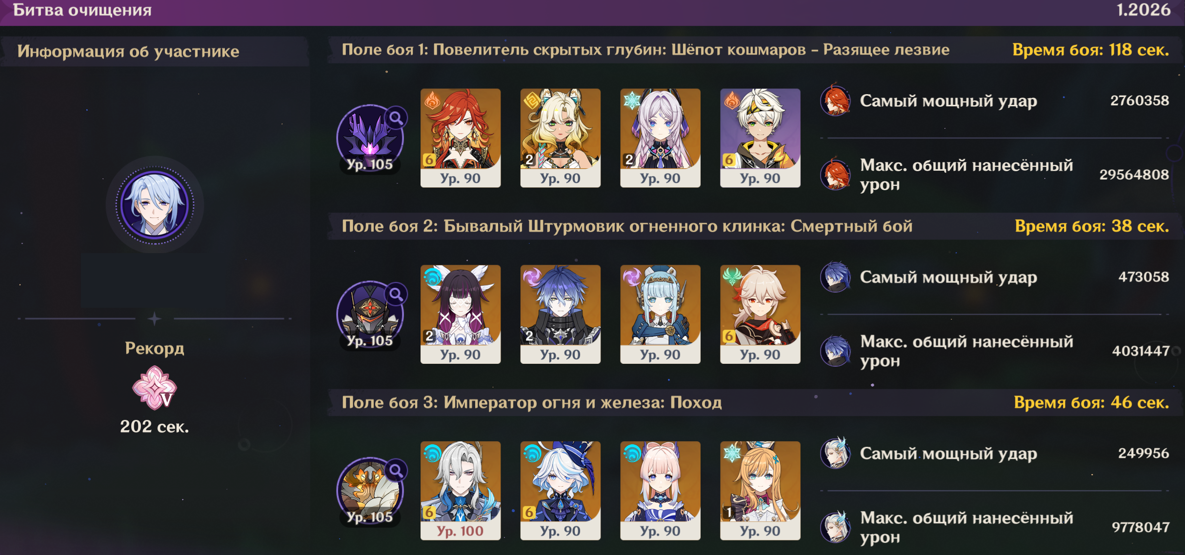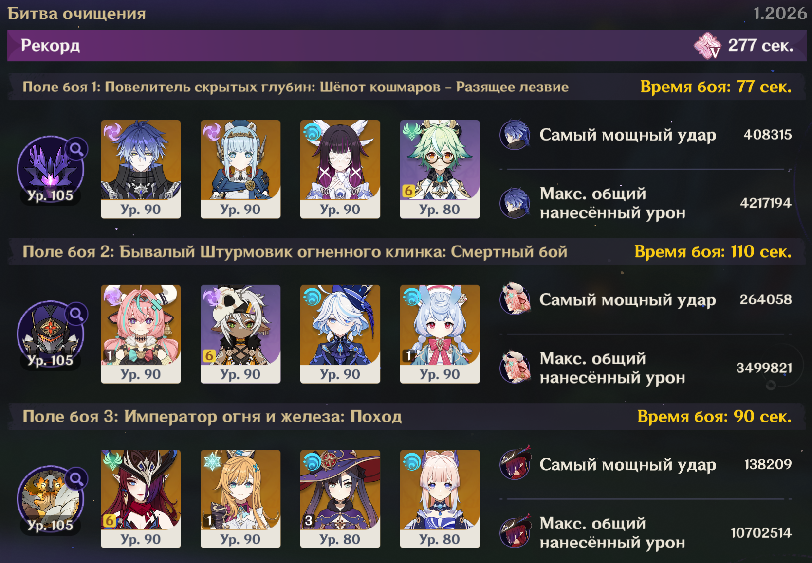 >>6363455 Минут 15 поменял, наверное. >>6363475 Театр на 12 раньше закрыл. Бездну обычно на 33 закрывал. Натиск...ну, брал серебро за гемы и уходил. На шестёрку то не вывезти.