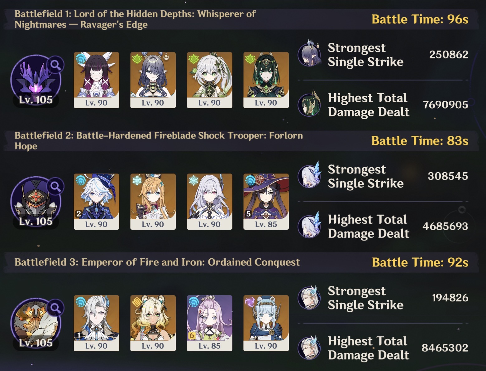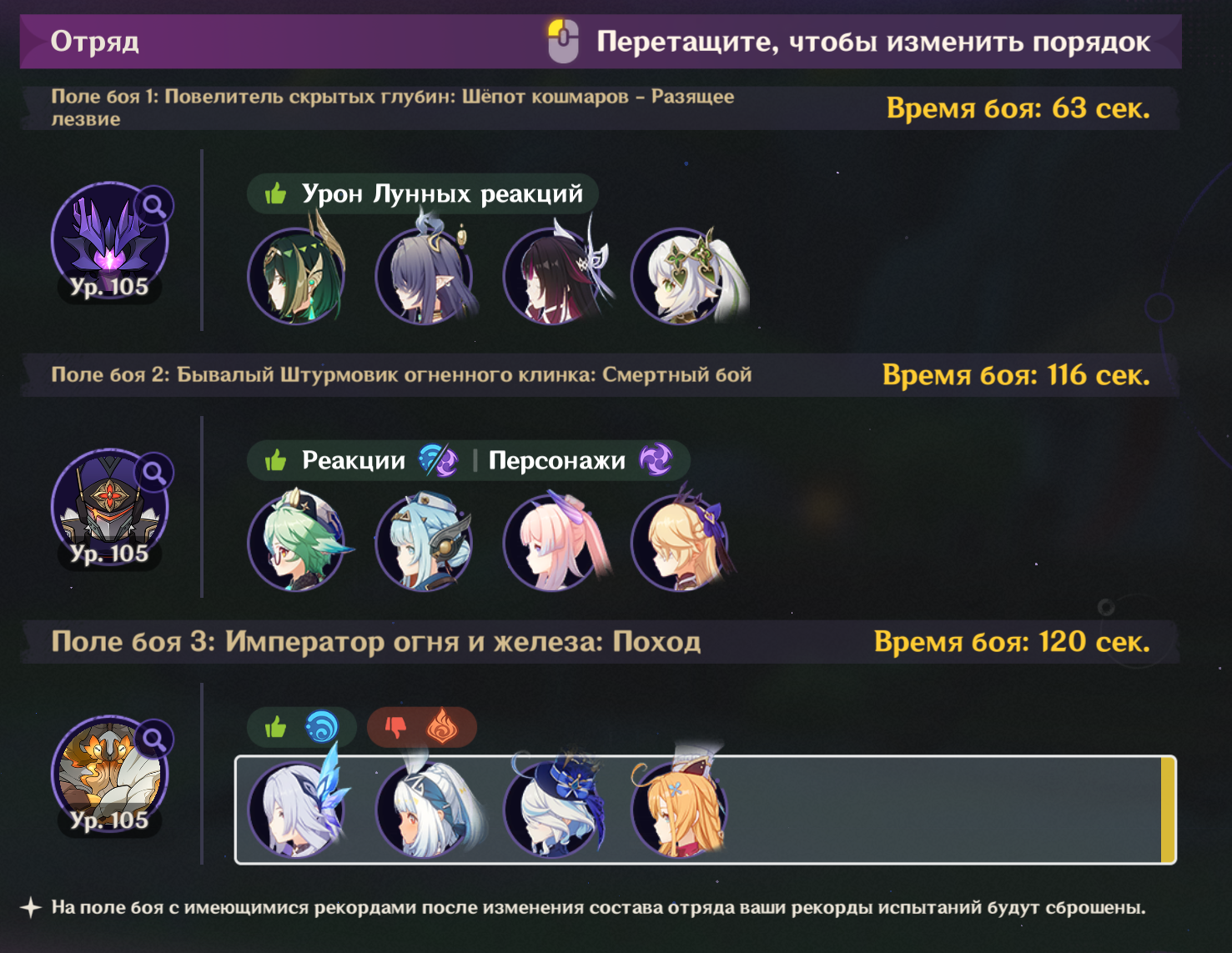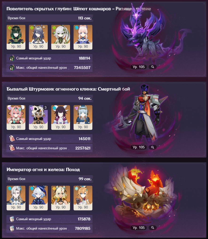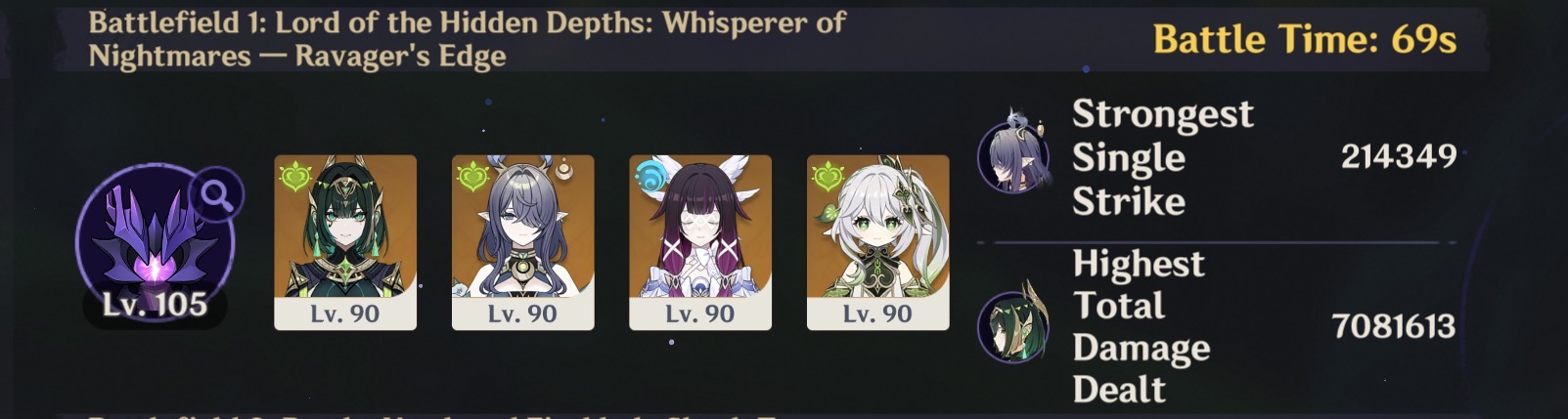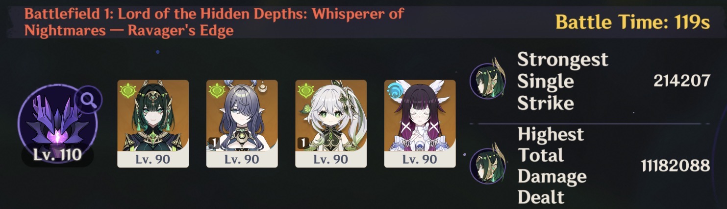 Как эти люди ухитряются проходить конекадавра так быстро? С1 Нахиды и Лаумы ведь вообще урона не добавляют. Для сравнения - вот моя утренняя попытка (докачал Колумбину до 1/9/8). У Нефер сигна.