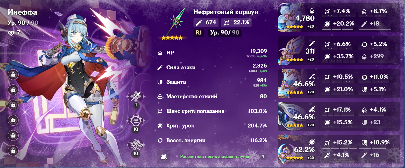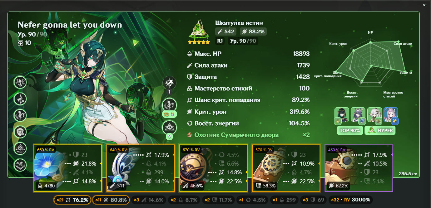 >Дендро сет с максимальным вкидом в мс на Няхиду, Куски 2 на 2 на мс на Лабубу и раздаватор мса из 6.0 на Клумбу. С таким я гоняю.