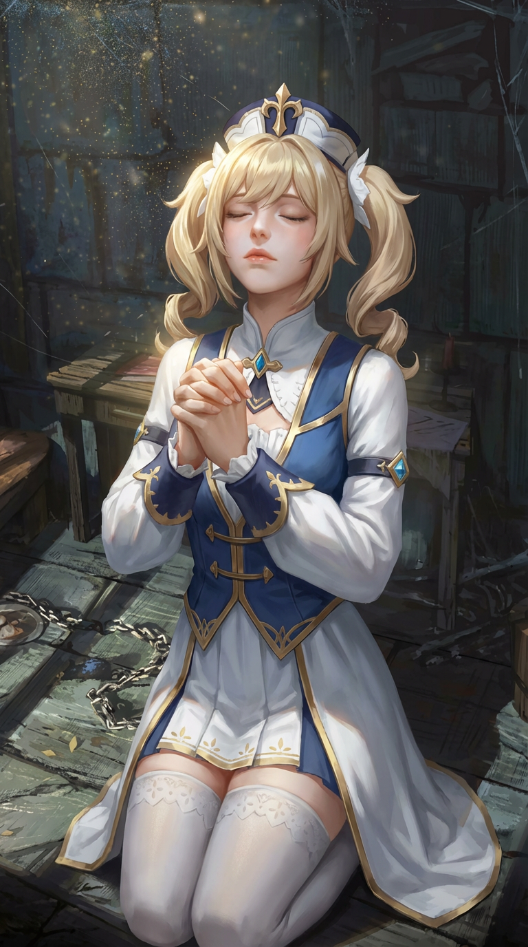 >выступает последним препятствием перед неминуемой резней. Судя по серьёзному выражению лица, она прекрасно понимает итог, но всё равно не отступит. Возможно в Церкви прячутся гражданские... Ну будем надеется, что Барбатос придёт вовремя.