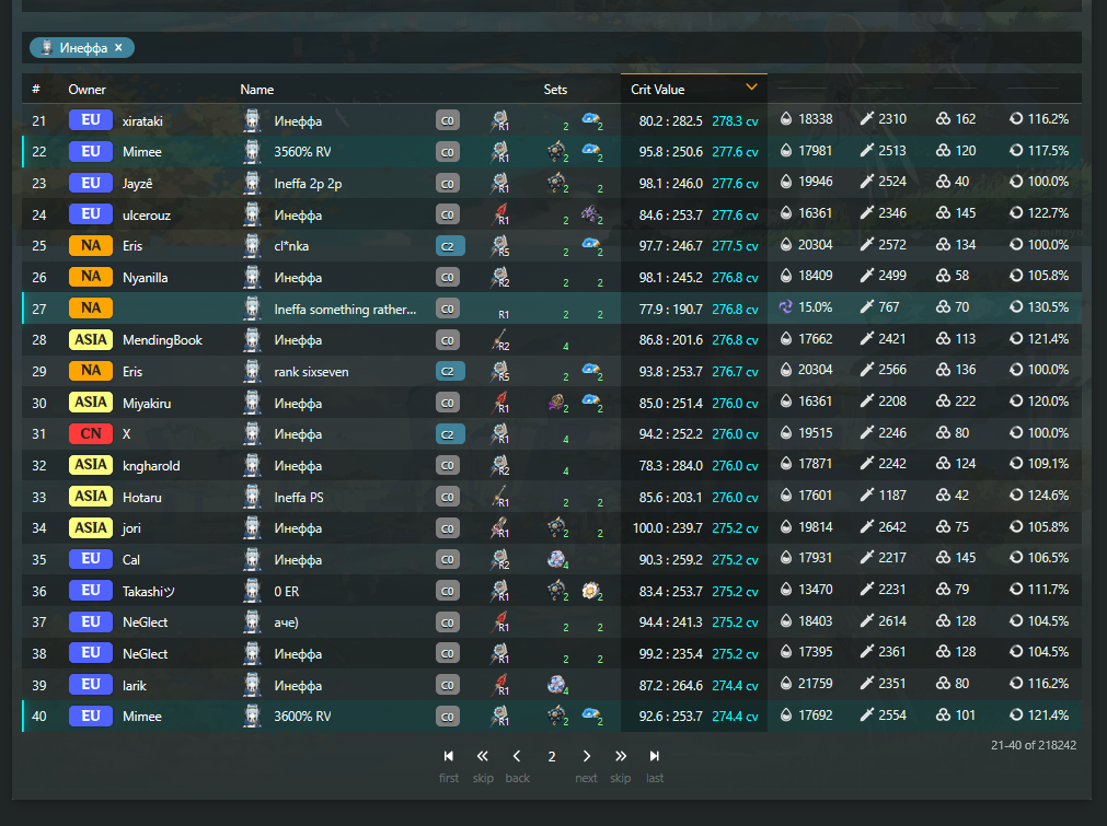 Как в вашей ебучей акаше смотреть сборки топовых челов бля? Как можно выбрать по персонажам? вот хочу козю поглядеть по сборке, можно выбрать просто выборку по чару козя ?