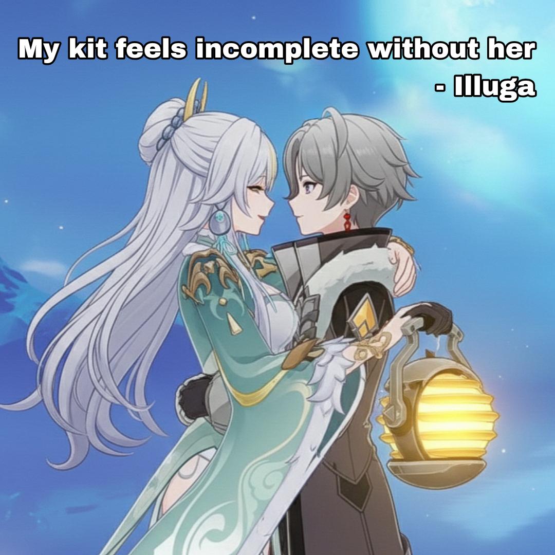 >Паверкрип Удачи в надриске: -Аякой, вместо Скирк -Хутавой вместо пиджачка и мопеда -тортом, Аято вместо Базилета Тут геншин спасает то, что часть дд просто изначально кал.
