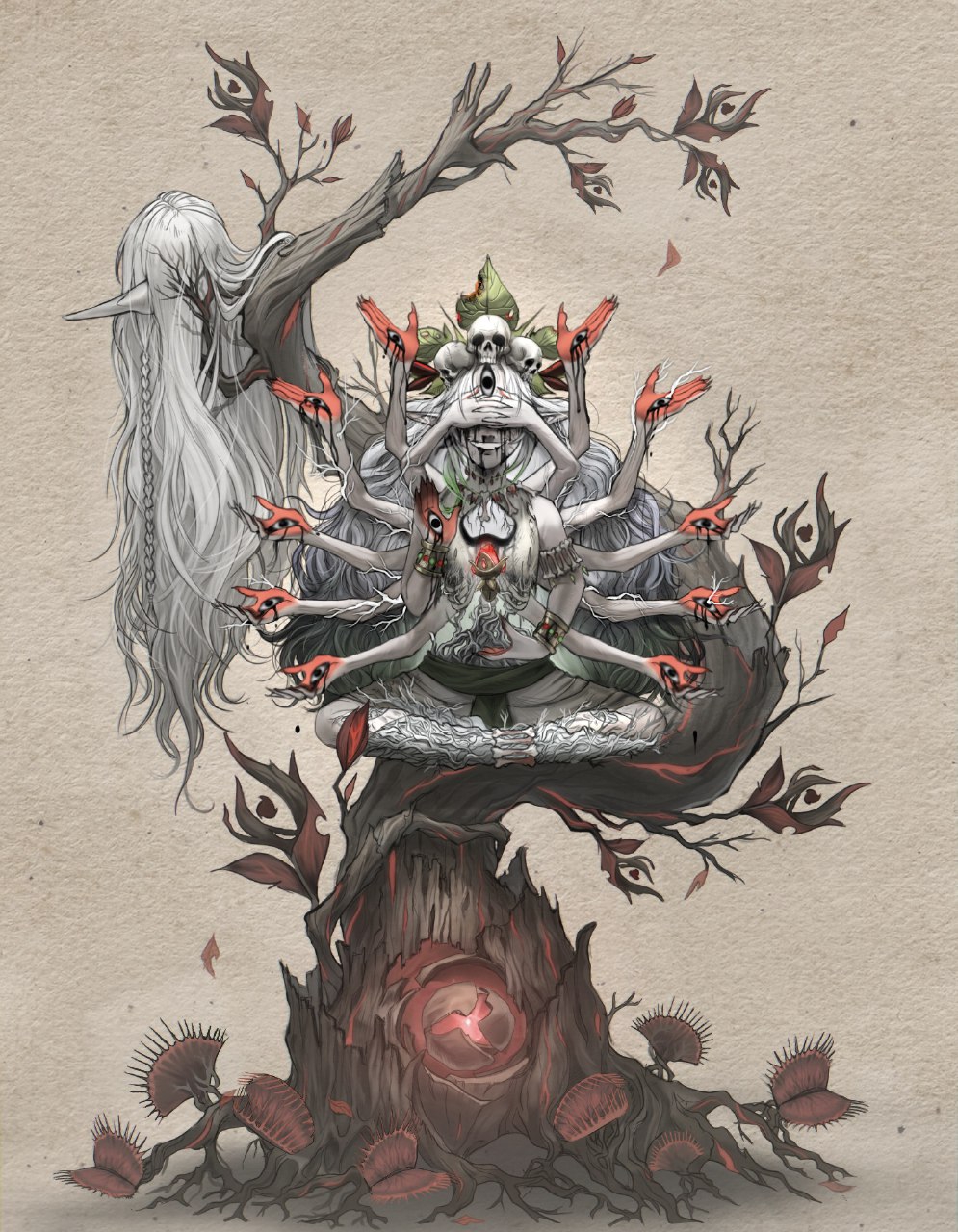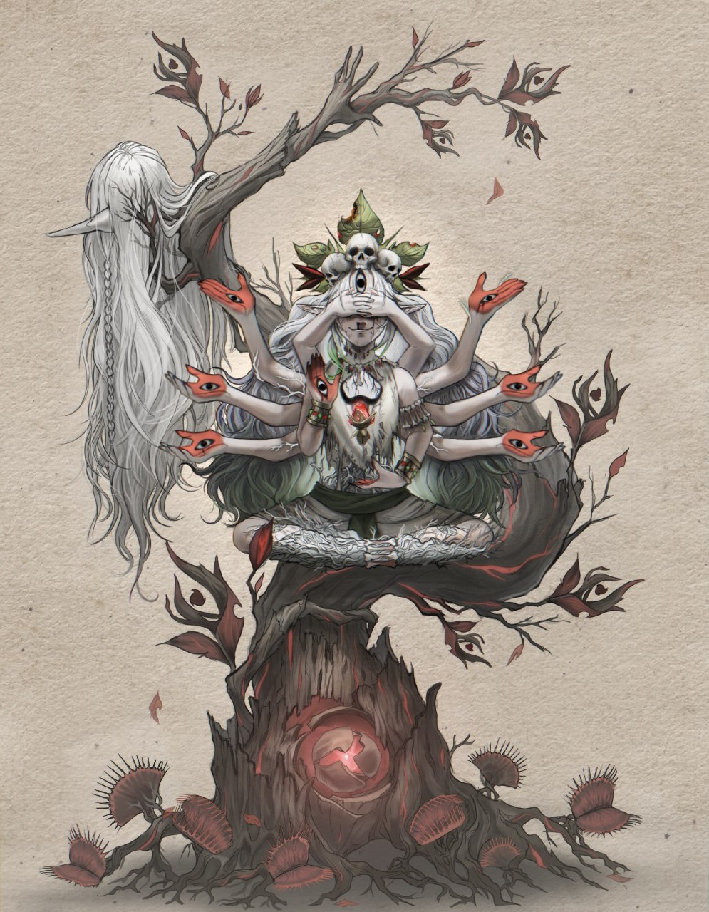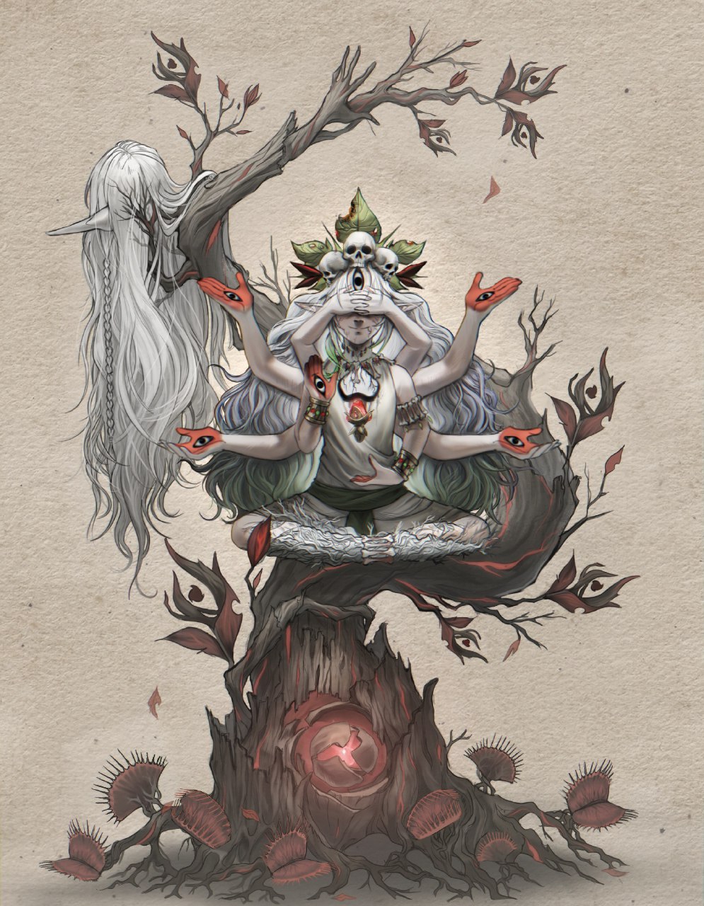 Лунных богинь туда запечатал Нибелунг, Рерира там приковала сама бездна, Толиндис смертная. Клумба туда выкинулась сама + да оставила часть своей души и получилась временная петля.