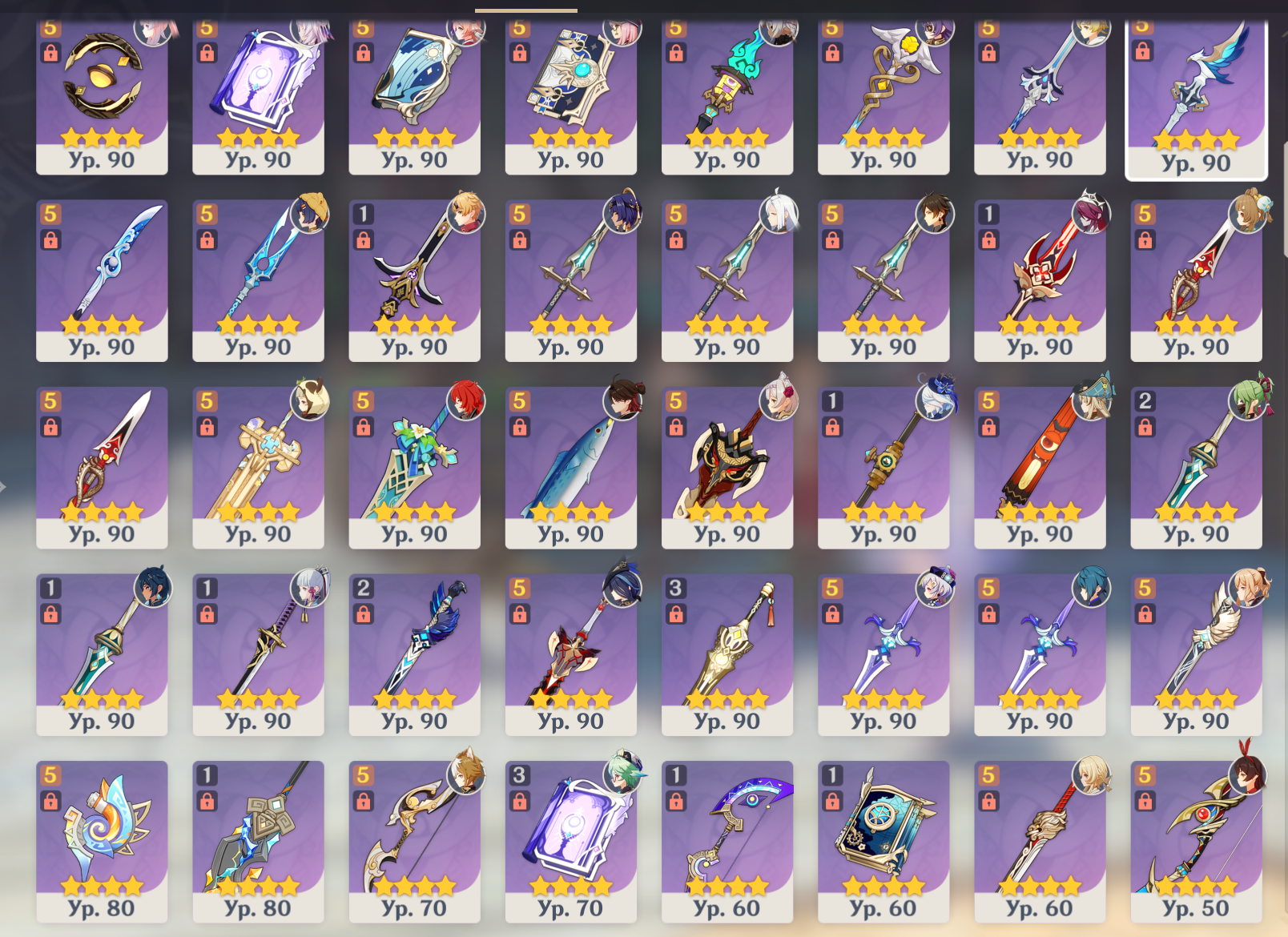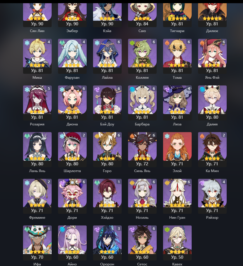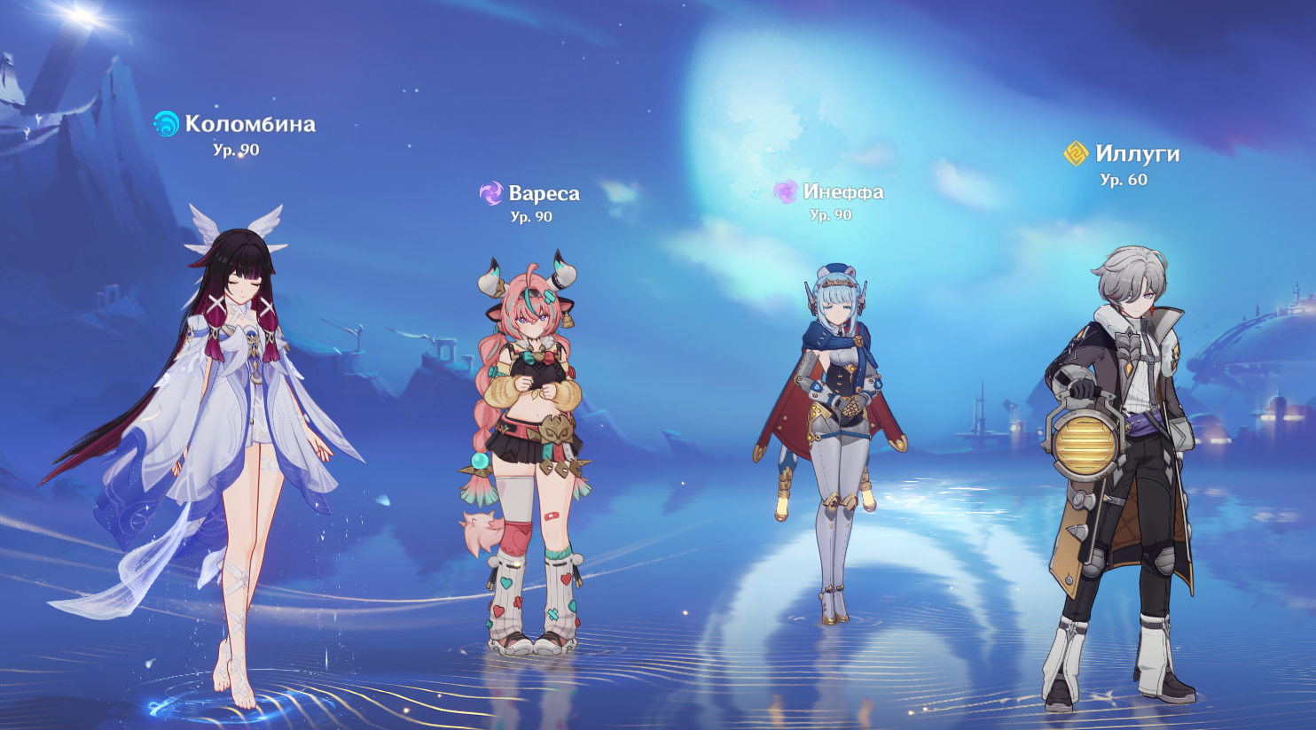 Созвездий у легендарок нет (у Иллуги два, но у него и арты 8 лвл) Коломбина и Инеффа с сигнатурными пушками, они единственное что вкачено до конца (ну и бесплатный меч лошади).