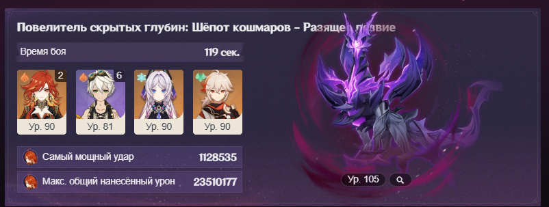 Бля не смог пройти хуесоса из первой комнаты в команде Айно-Кихрюшка-Фишля-Сахарок Но близко я чую была бы фишля в милилите и была бы сигна надежда была бы...