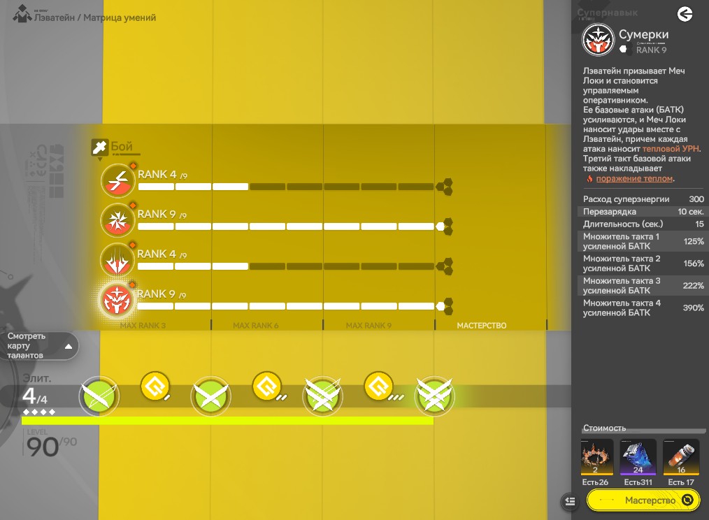 >>6373948 Согласен. У меня тоже Панихида только 90 взяла и Сайхи немного подкачал, ресурсов не хватает жёстко. Я еще полностью прокачал Лэватейн и волка, но это не важно