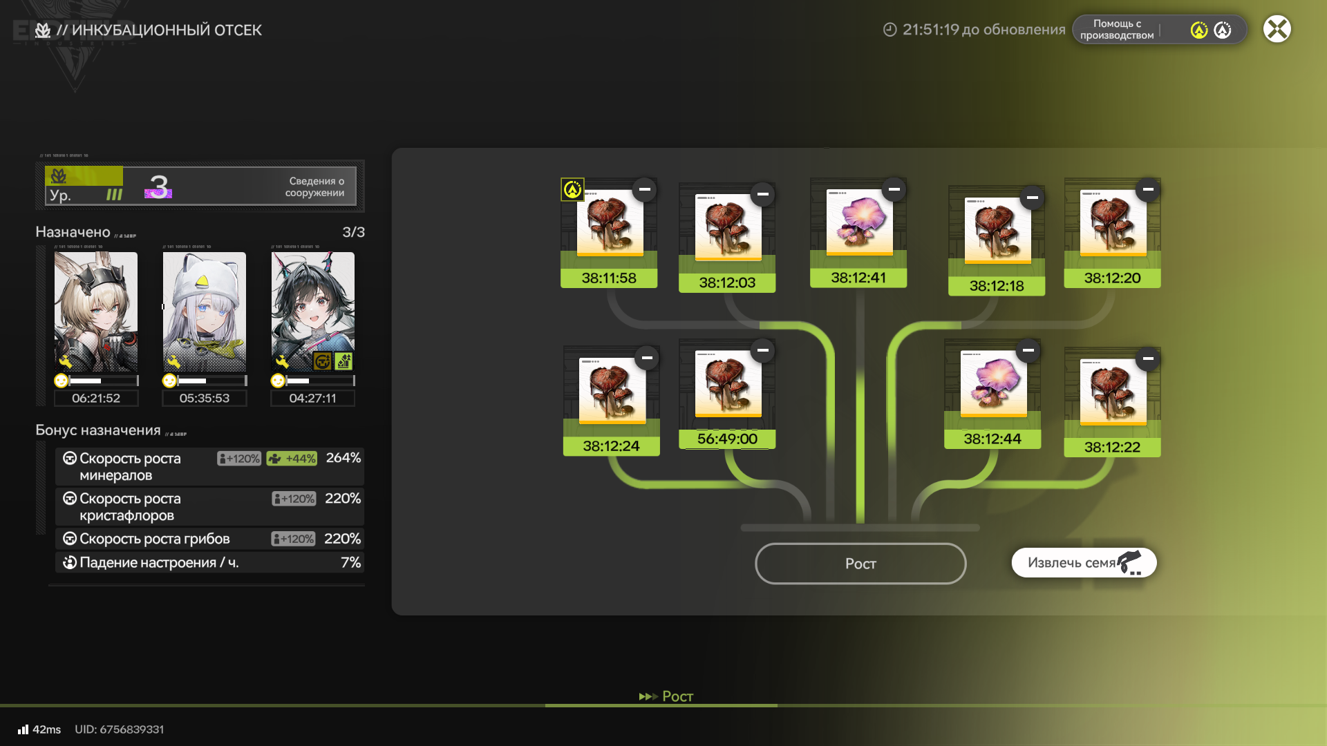 Грибочки и руду можно не газовать собирать. Там респов на грейд 2х персонажей. Ты упрешся в экспу и кредиты а не грибочки. По сути собирать их после первоначальных забегов когда ресов много можно лишь непосредственно перед прокачкой.