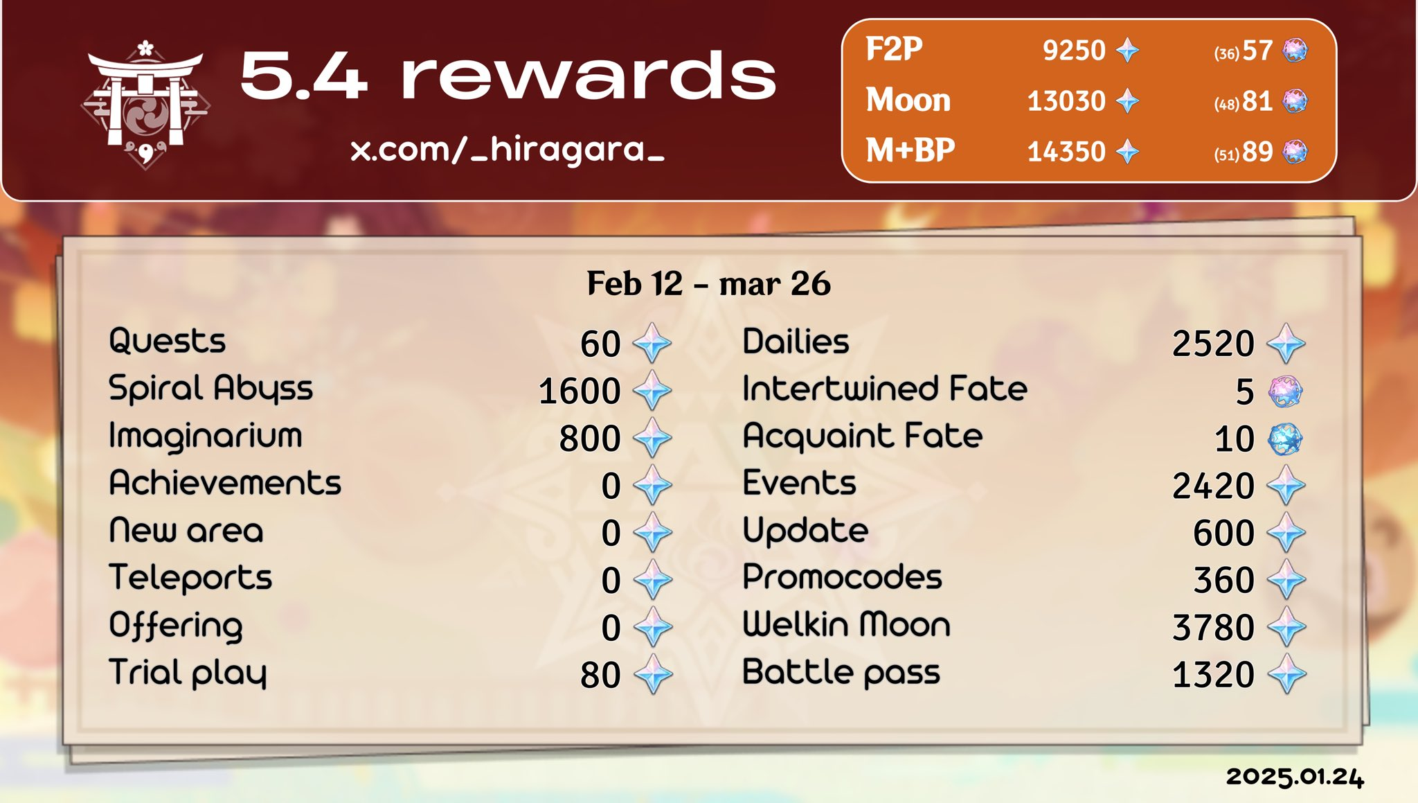 Счетоводы забывают про 60 халявных круток в каждый патч с двумя лимитками (два раза по 10 баннерных, 10 за 30 попытов и 10 за 60). Просто надо крутить девочек, а не держать какашечку хз на что.