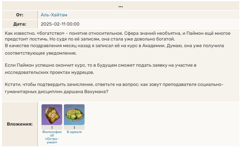 >>6388865 Тот случай когда письма персонажа написаны интереснее самого персонажа. Будет забавно почитать чем это всё закончится, хотя вангую что ляо включит лень и обыграет отчисление Паймон из Академии