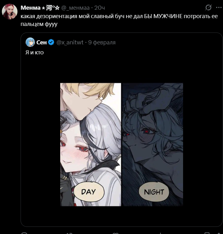 >>6389515 Борей это волк из монда для еженедел ного пизделова Койтар, эта ангел, которая сперва фанета подставила и из-за этлй мрази потом всех ангелков в тупых фей превратили (только николь засейвилась, теперь вот лошадь еще). Саму Койтар вроде памяти лишили, но она потом в волка то ли влюбилась, то ли че, не помню. Суть в том, что вот потом с Бореем она была. Че то такое.