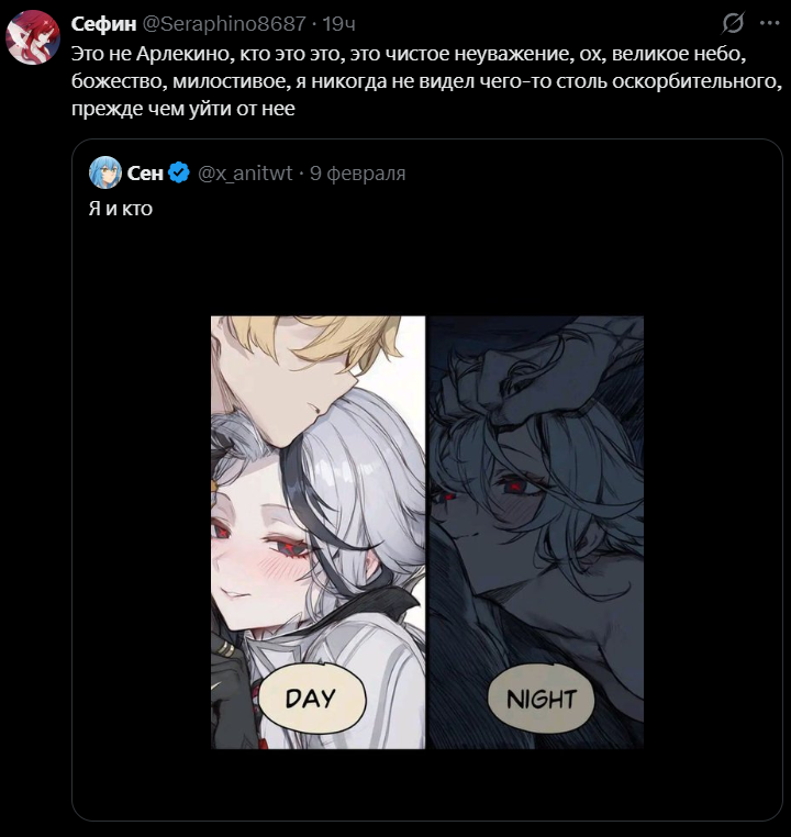 Фанаты Арлекино, хочу попросить у вас прощения за то, что мастурбирую на вашего любимого персонажа. Это повторится. Фанаты Фурины — к вам вопросов нет.