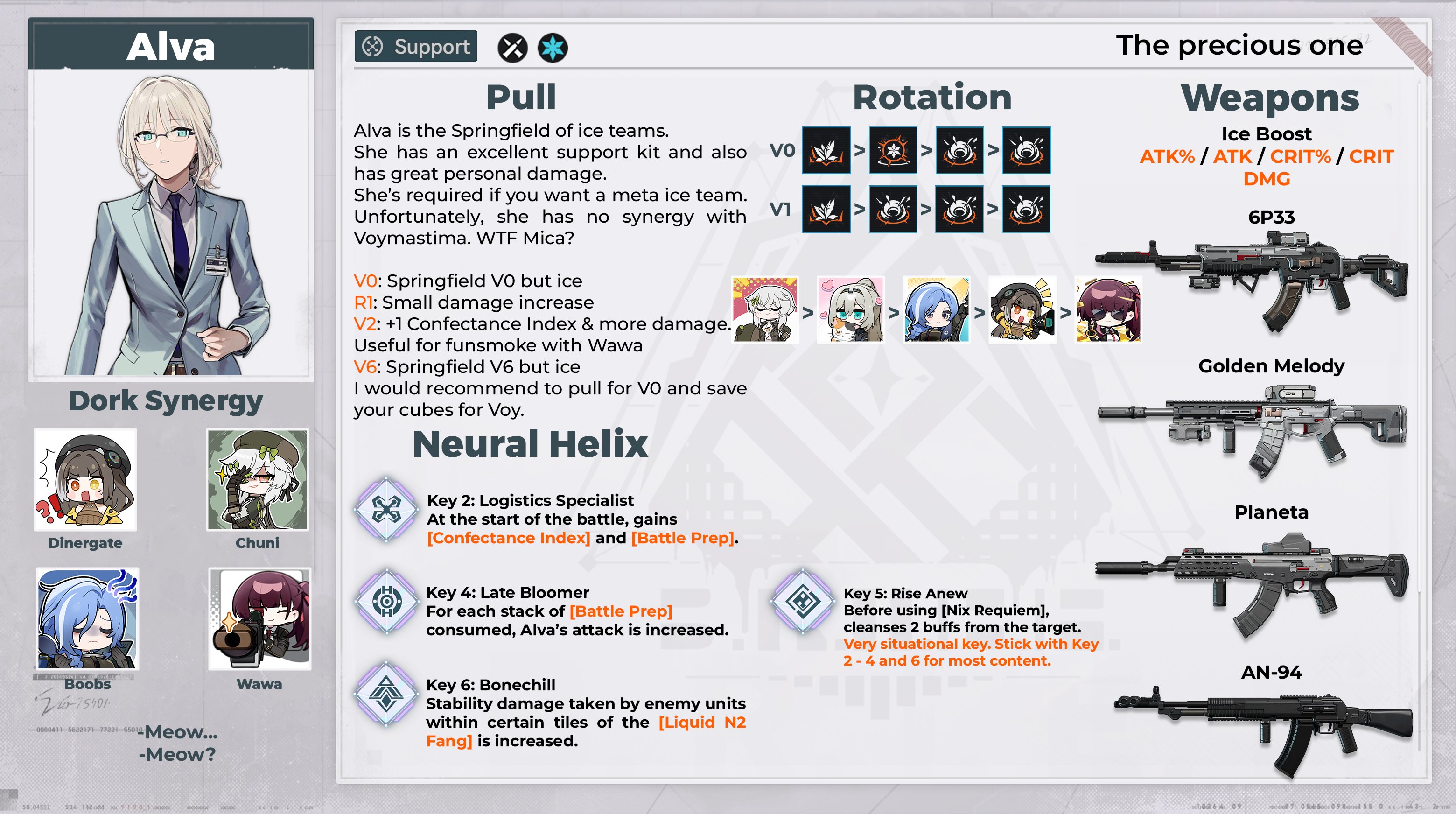 Изначально планировал брать Альву, а раз кроме крио она нигде больше не встает, пришлось остальных добирать.